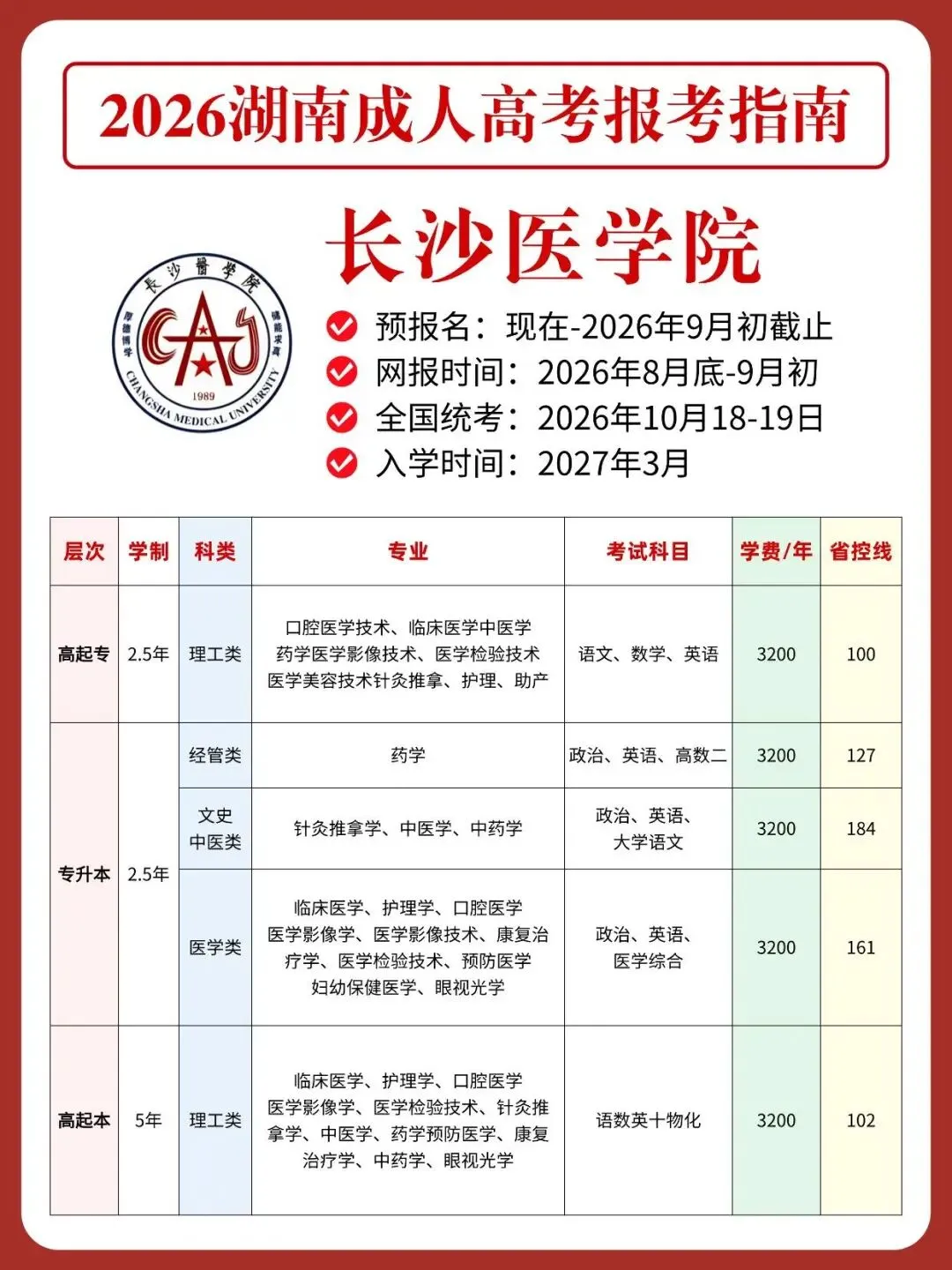 长沙医学院成人高考是湖南成人高考的一所专门的医学类学校!长沙医学院先后获评全国先进办学单位、中国十佳诚信民办高校、全国就业先进院校、第二批全国急救教育试点学校、湖南省文明高校、湖南省十佳民办学校