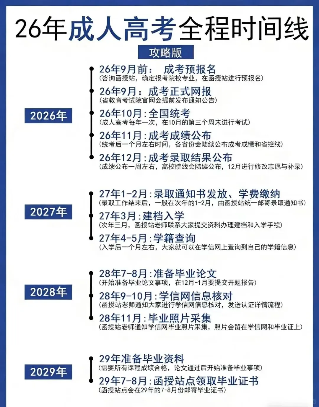 2、1-8月在函授站预报名,选好专业,确定复习科目,开始进行复习,10月份参加入学考试,12月录取入学,开始缴纳学费,一年一交,次年的3月份开始,正式进入2.5年的学习期,整个学习期的时间安排如下:
