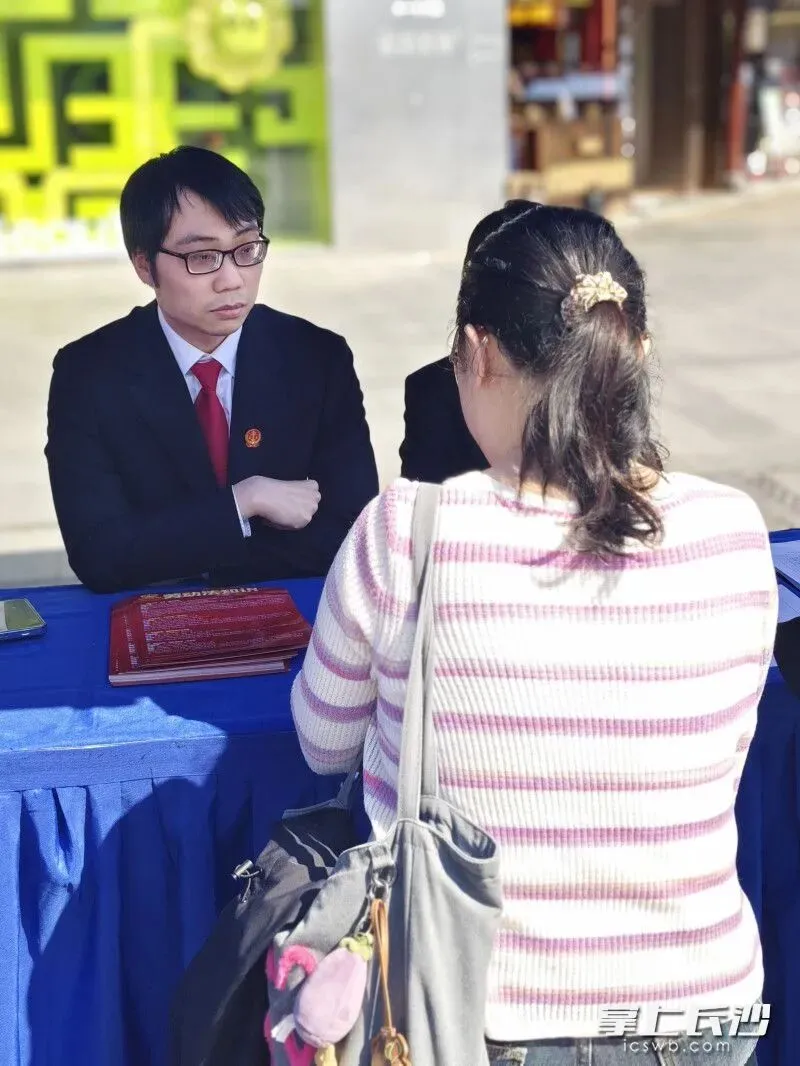 记者发现,除了传统的面对面洽谈,活动现场还设立了“人才一站式求职服务台”。天心区人社、法院、工会、妇联及五一商圈管委会等多个部门联合开展现场咨询服务,为求职者提供劳动权益咨询、社保政策解读、简历指导等公益服务,真正实现了“求职+维权+赋能”一站式解决。