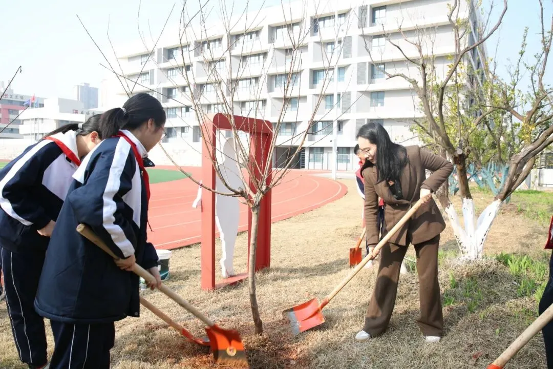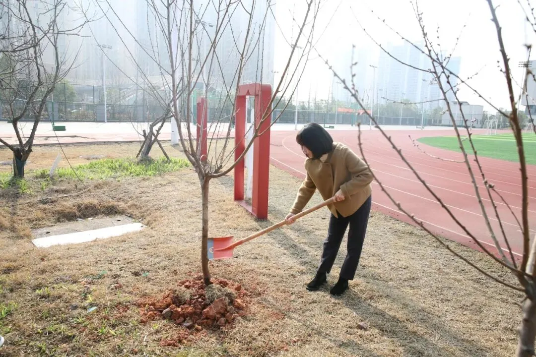 本次活动选择载种桃树,将“十年树木,百年树人”理念与“桃李满天下”寓意深度融合。每一株桃树苗,都承载着学校对学子的期许、教师对教育的坚守,以及党团队同心共育的愿景,既美化了校园,更让育人内涵在校园落地生根。