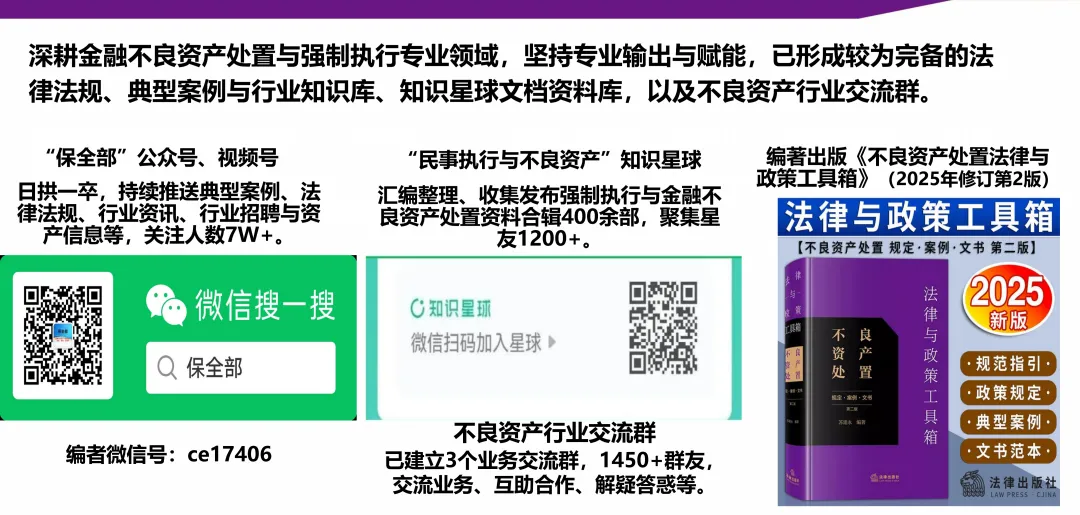 已经建立了4个不良资产业务交流群,欢迎来自金融机构资产保全部门、AMC及不良资产行业人士点击加入不良资产业务交流群(2026.2)