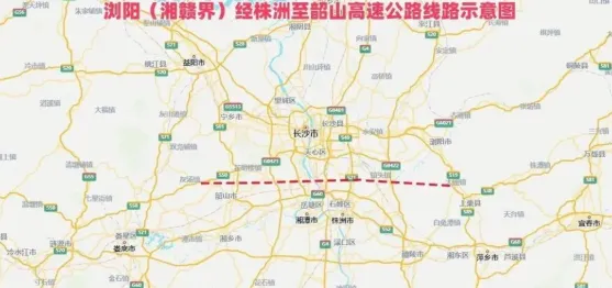 这条全长98公里的高速路,东起浏阳普迹镇,西至宁乡金石,串联长沙、株洲、湘潭三市。 其中浏阳至宁韶高速段是双向六车道,设计时速120公里,相当于每秒跑33米;宁韶高速至金石段则是双向四车道,时速100公里。