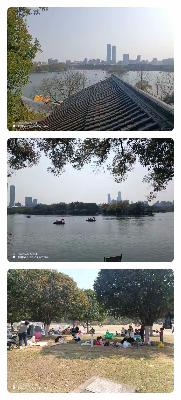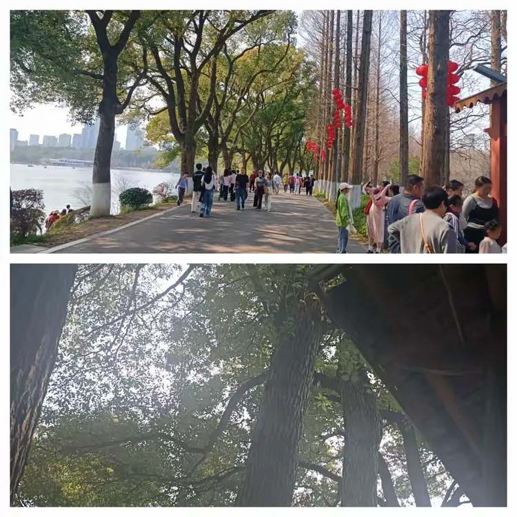 公园里游人如织,热闹又惬意,散步、闲谈、遛娃、拍照,处处是人间烟火。