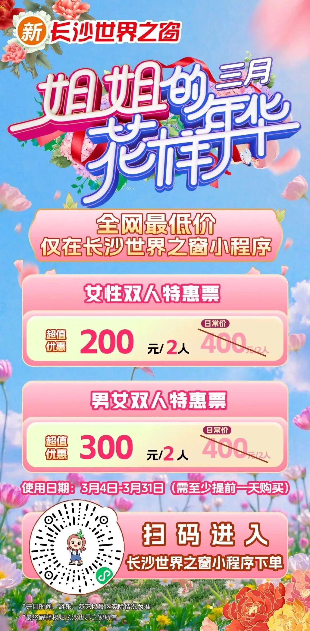 来长沙世界之窗,赏春快乐直接翻倍