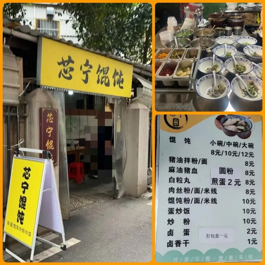 他家以馄饨出圈,也有一些其他小吃,是个简单的社区店,基本上早中晚餐都营业。馄饨,皮薄,肉馅鲜香、有淡淡的碱味,而且没有胡椒,就是我喜欢的小时候的长沙馄饨味……尤其这清澈的骨头汤和爽脆的凤尾酸菜,更是喜欢!白粒丸,也是喷香的凤尾菜配上淡淡米豆腐香的白粒丸,撒点干辣椒粉,挺好吃的。麻油猪血,我个人不怎么吃猪血的,但是朋友觉得他家猪血味道还可以。拌面,个人觉得只要是有碱香和韧劲的细面,加上猪油和简单的调味,味道就不会差,这里也做到了,虽说不能像那些专门做粉面出名的店的带芯干那么香,但是也算中规中矩不踩雷咯。早上来吃早饭的话,隔壁还有那个比较火的炸油饼摊子在营业,一口汤配一口油饼还是挺满足的,那个油饼只做上午。个人觉得,刚好到这边来了,有空可以去试试,我六月份去的时候还没有空调,不知道现在怎么样,哈哈。建议不要开车进去,不蛮好停。