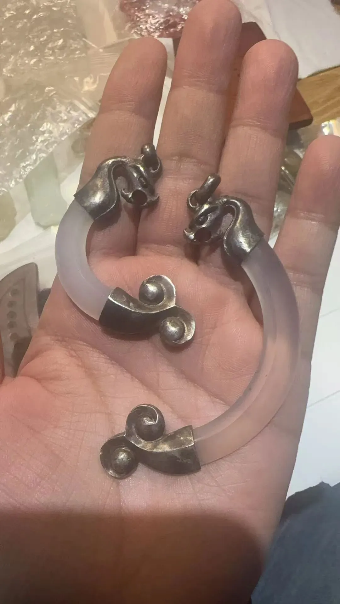 首先就是收了两个文化期残玦二次创作的龙,也是国内比较知名的龙泉剑阁创始人设计,独立制作的一款古为今用的文创产品,非常有特点!