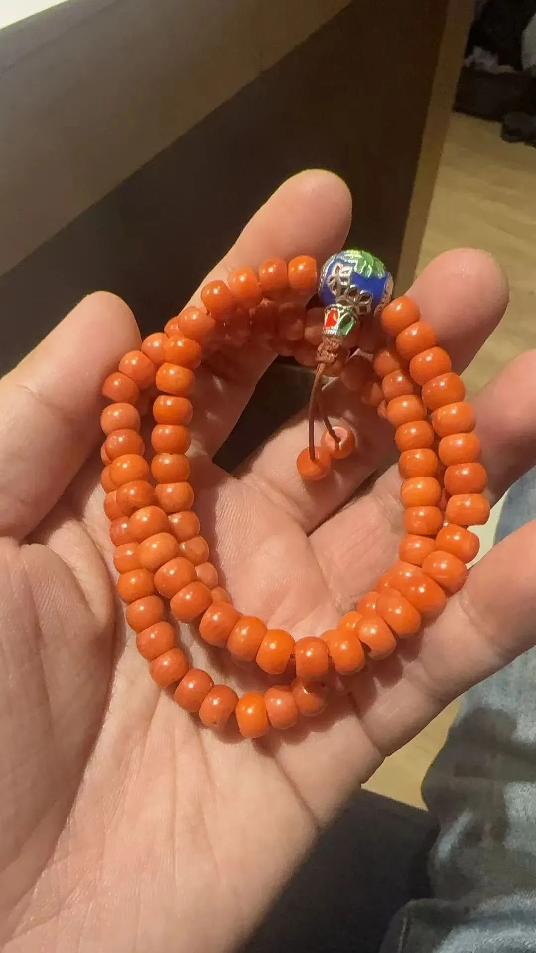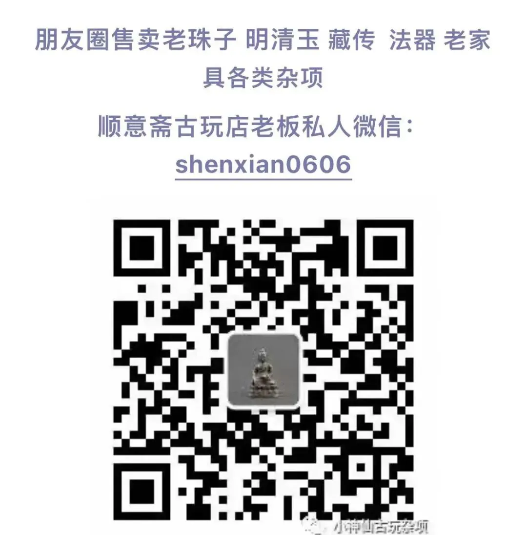 还收了一串老珊瑚108籽手串,珠型饱满,颜色均匀,虽有柳裂和虫眼,却也是一种判断的依据,反而证明其价值!今天逛下来也是十分累,不过好在收获满满,还有很多东西,来不及分享,大家如果喜欢,可以从下面的二维码找到我!