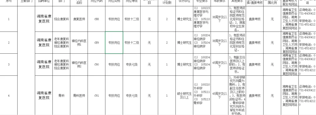 0731-84304120湖南省康复医院人力资源部