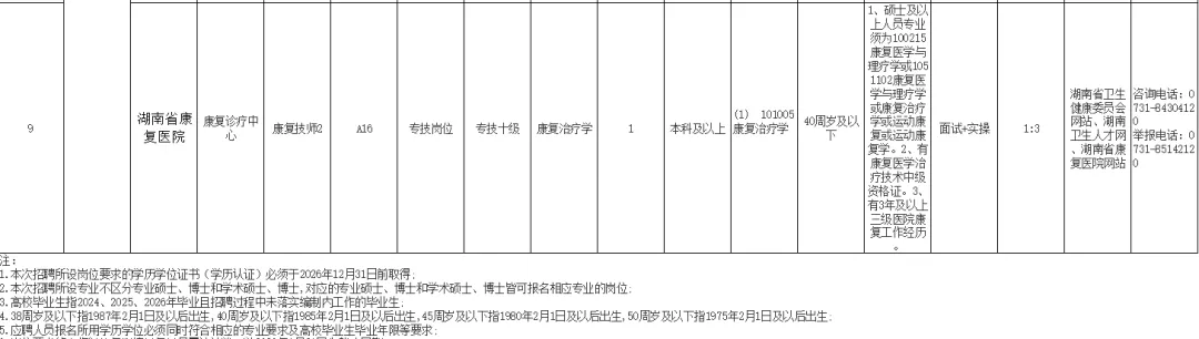 湖南省康复医院2026年公开招聘公告