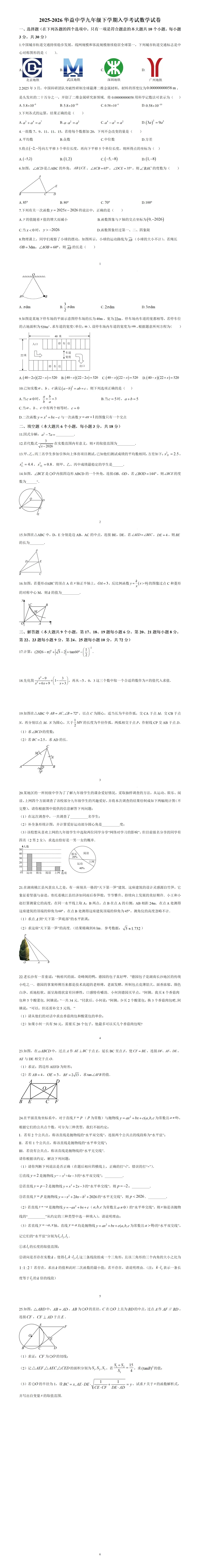 >长沙市华益中学2025--2026学年九年级下学期入学考试数学试卷