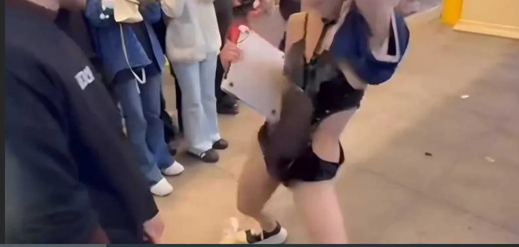 之所以火了就是当时很多人围观,有一名穿着十分暴露的女性在众人的围观下和一个男性在互动。