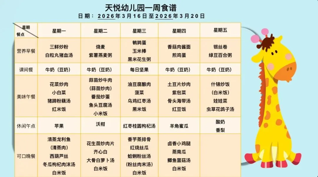 >长沙市天心区教育局天悦幼儿园美味时刻(2026.3.16——3.20)