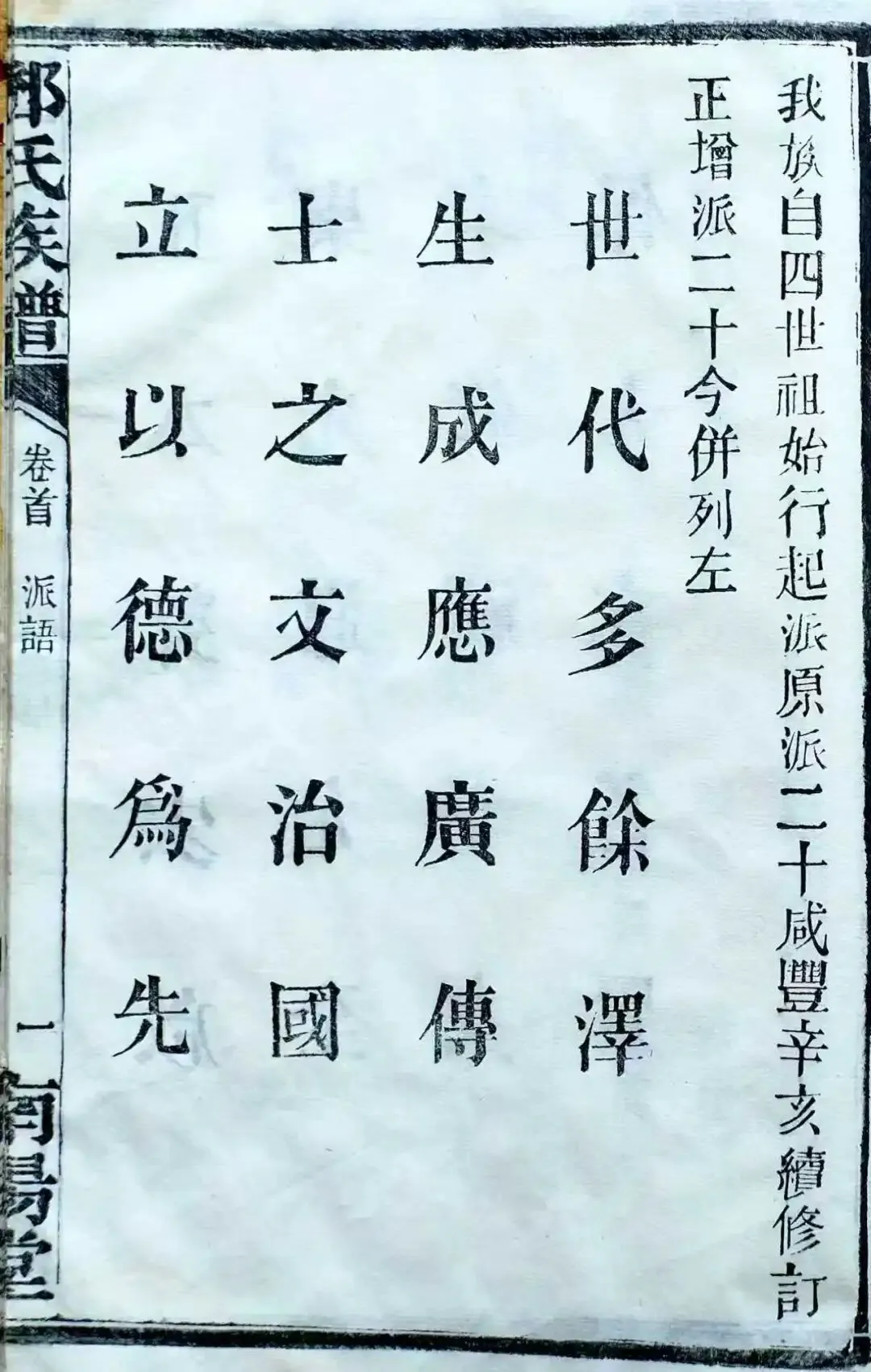 吾族邓氏,源远流长。自元末大德年间,銮、熊、辅、弼四公,由江西南昌府迁徙至长沙府,落业于㮾梨金托,开基立业,繁衍生息。后支分派别,由达、爱、质、春、爵、学、圃七公衍为七房,号“七门庐”,分居七地,各立门户: