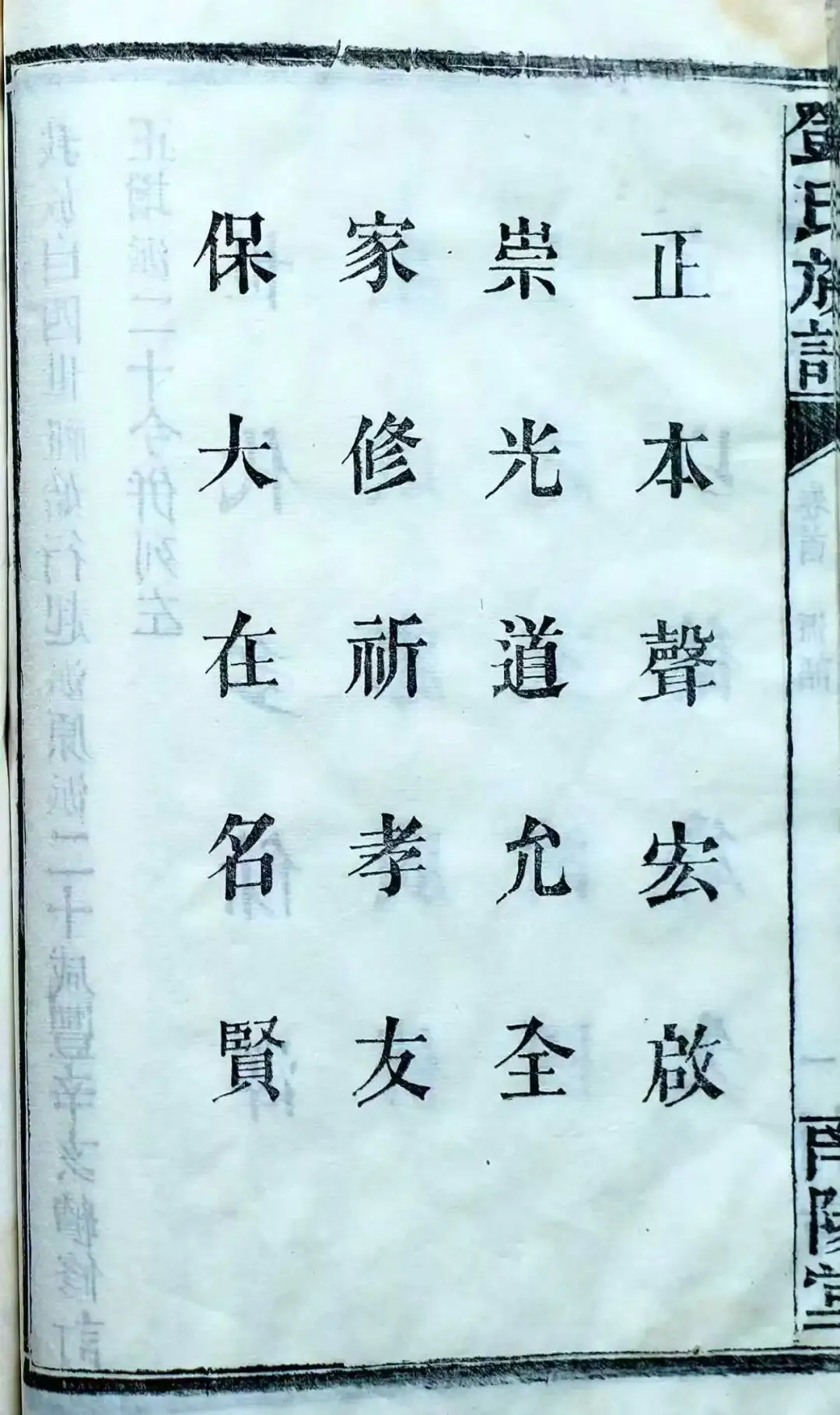 正本声宏啟崇光道允全家修祈孝友保大在名贤