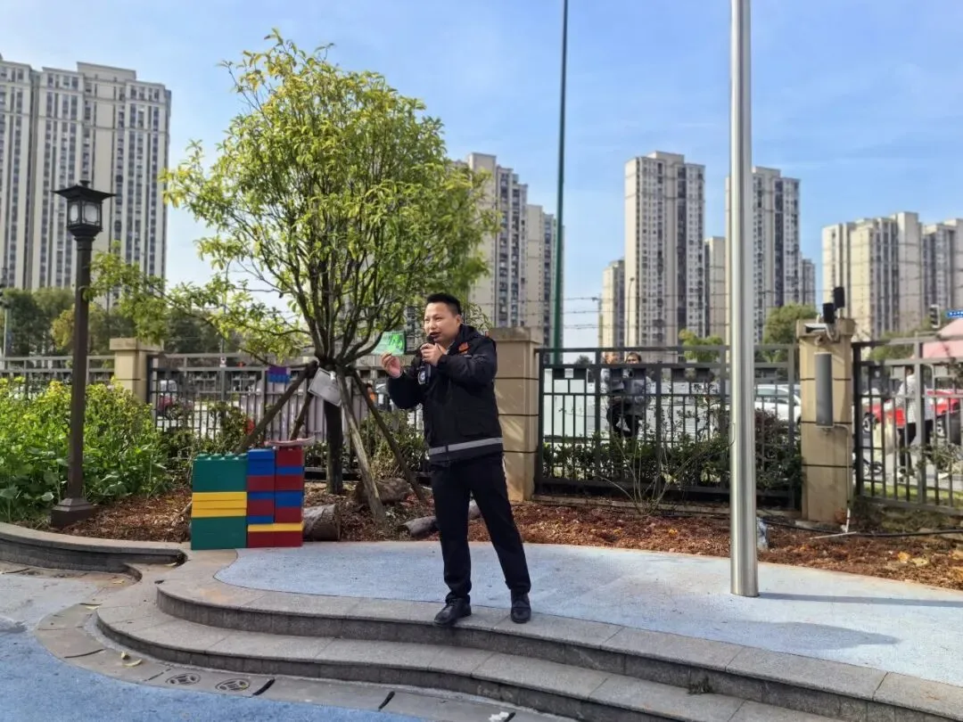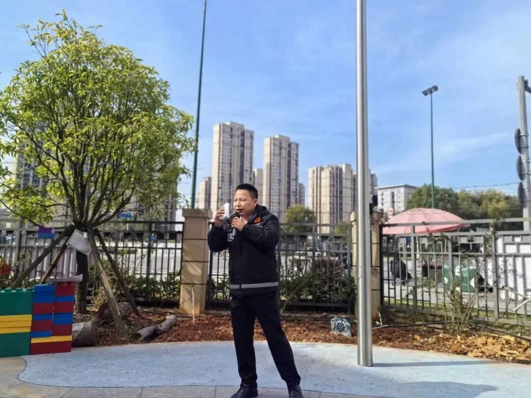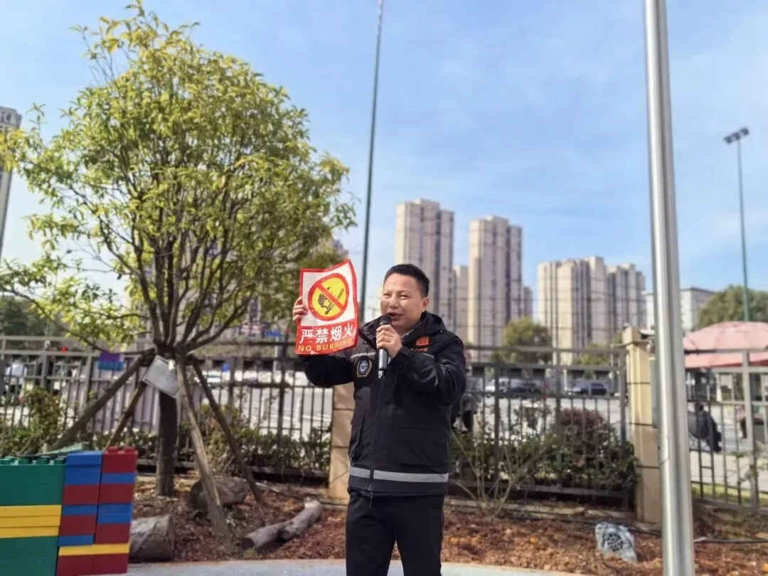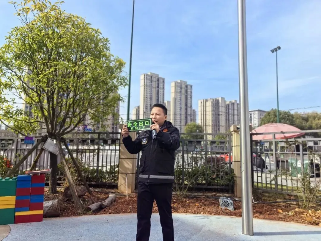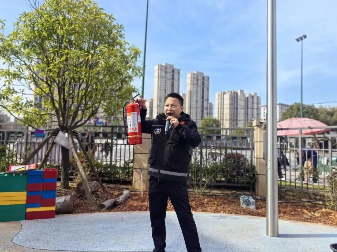 随后,来自龙角社区的成警官为全园师幼开展消防安全知识小课堂:现场为大家细致讲解了消防安全知识,重点示范了湿毛巾的正确使用方法,带领师幼认识各类安全逃生标志,并详细演示了灭火器的操作步骤。