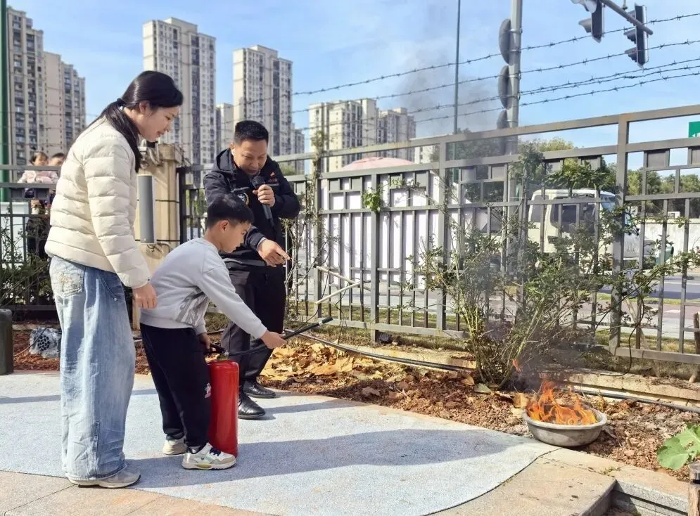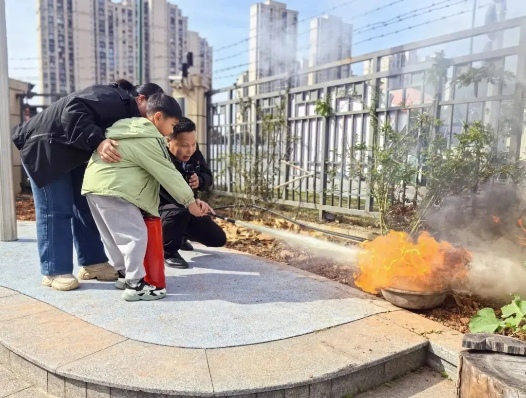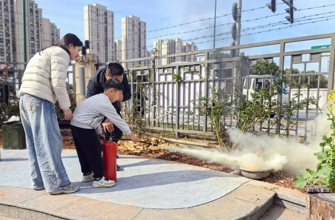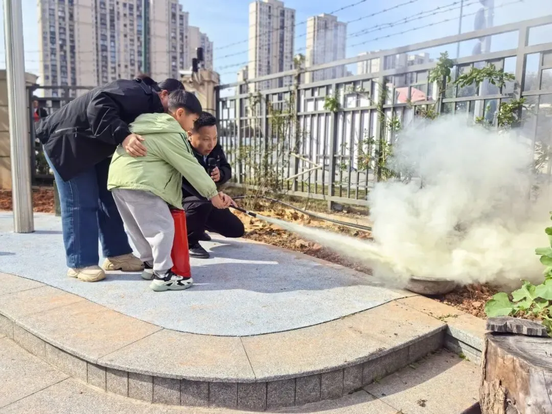 为让大家真正掌握技能,成警官还现场邀请老师与孩子们依次上前,亲身体验使用灭火器进行实操灭火,大家在真实体验中学习、在实践操作中巩固,进一步提升了自护自救与应急处置能力。
