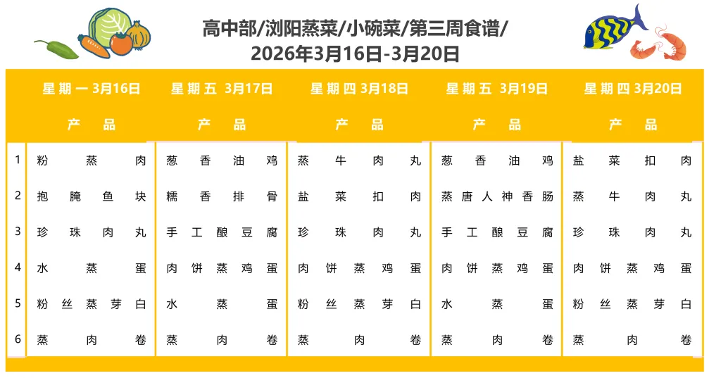 嘉美“食”光丨长沙市中嘉高级中学食堂第三周带量营养食谱