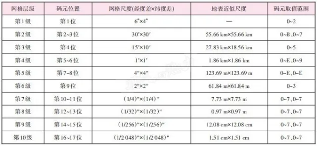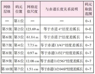 表1 位置码网格层级与剖分参数