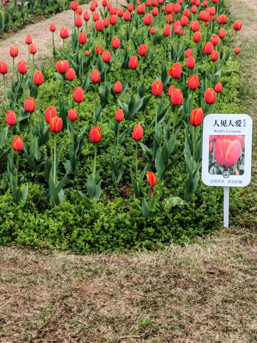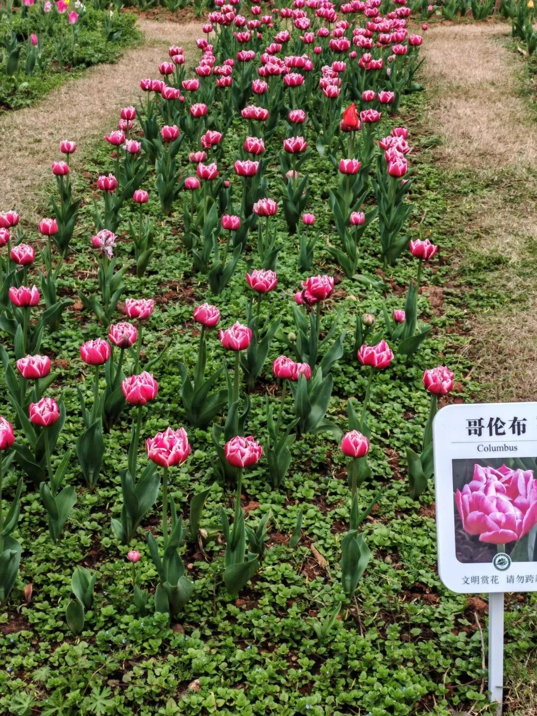 下一站湖南省植物园,这里郁金香盛开。各种品种的郁金香引来无数游客驻足。我也是开了眼,原来真有人见人爱(world's favourite),这是郁金香的一个品种。什么supermodel(超级模特),Columbus(哥伦布)……真是涨知识。五颜六色的郁金香让人看的眼花缭乱。