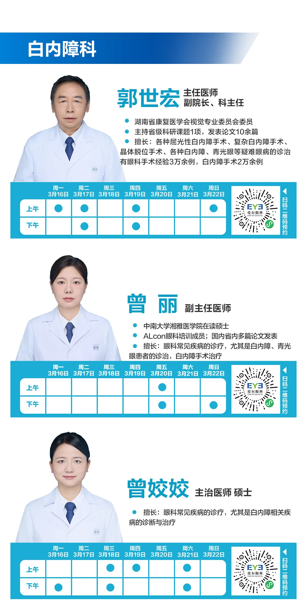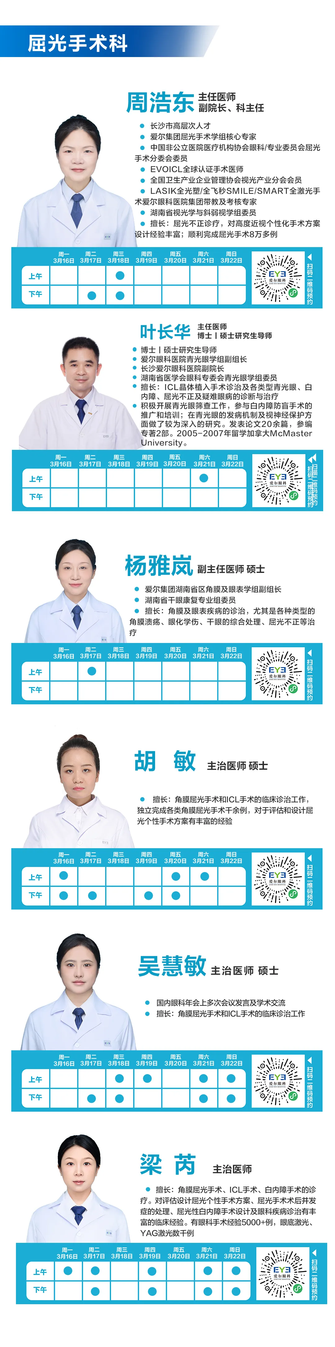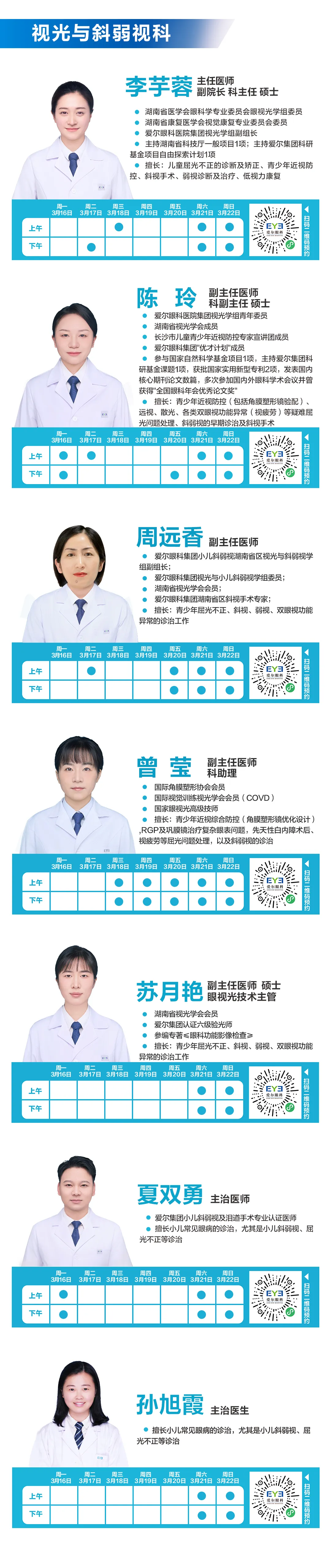 >3.16-3.22长沙湘江爱尔眼科医师排班表