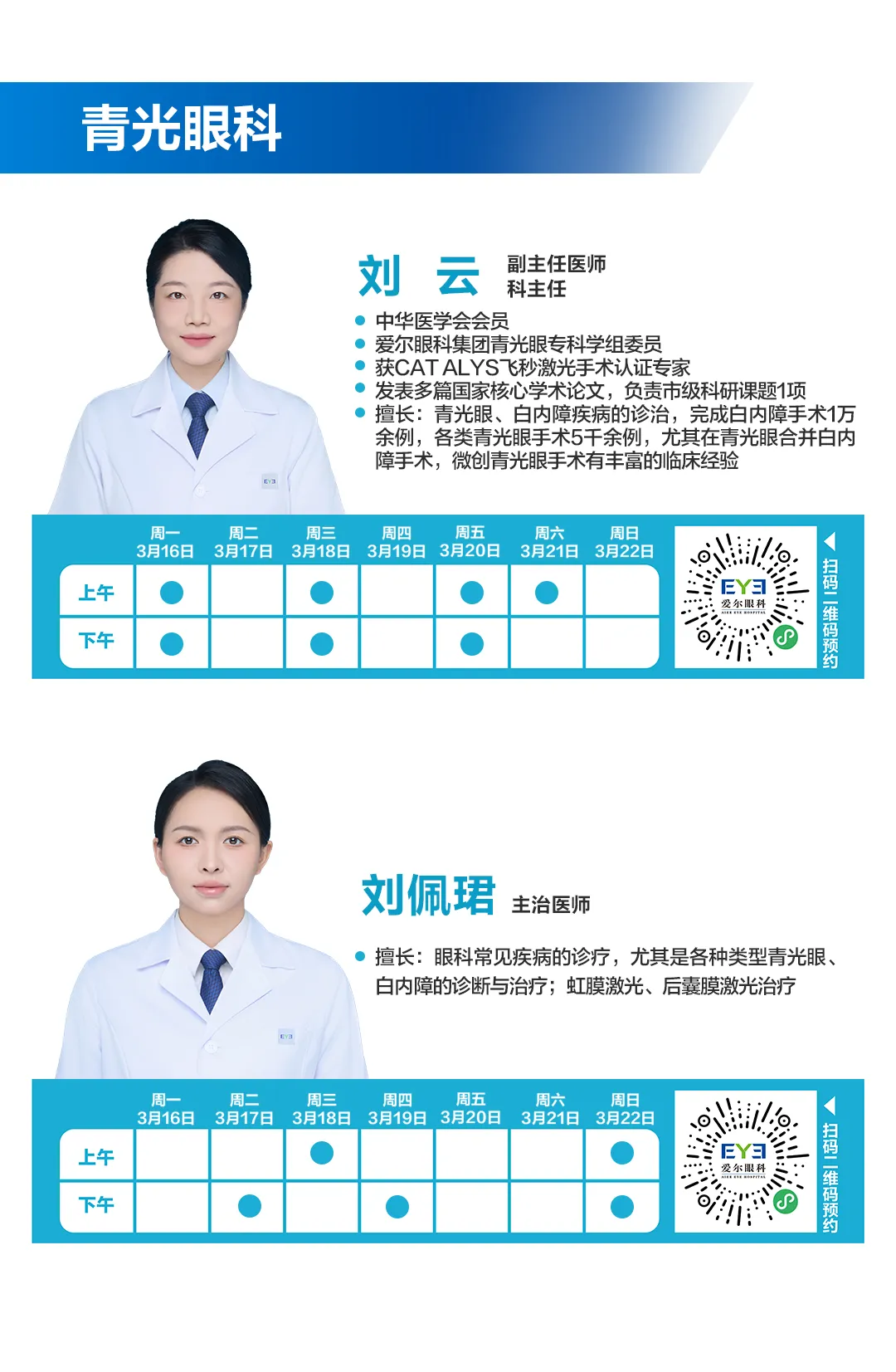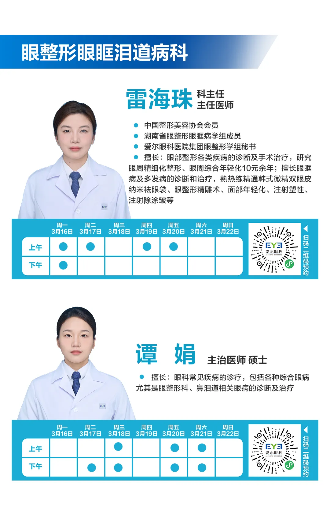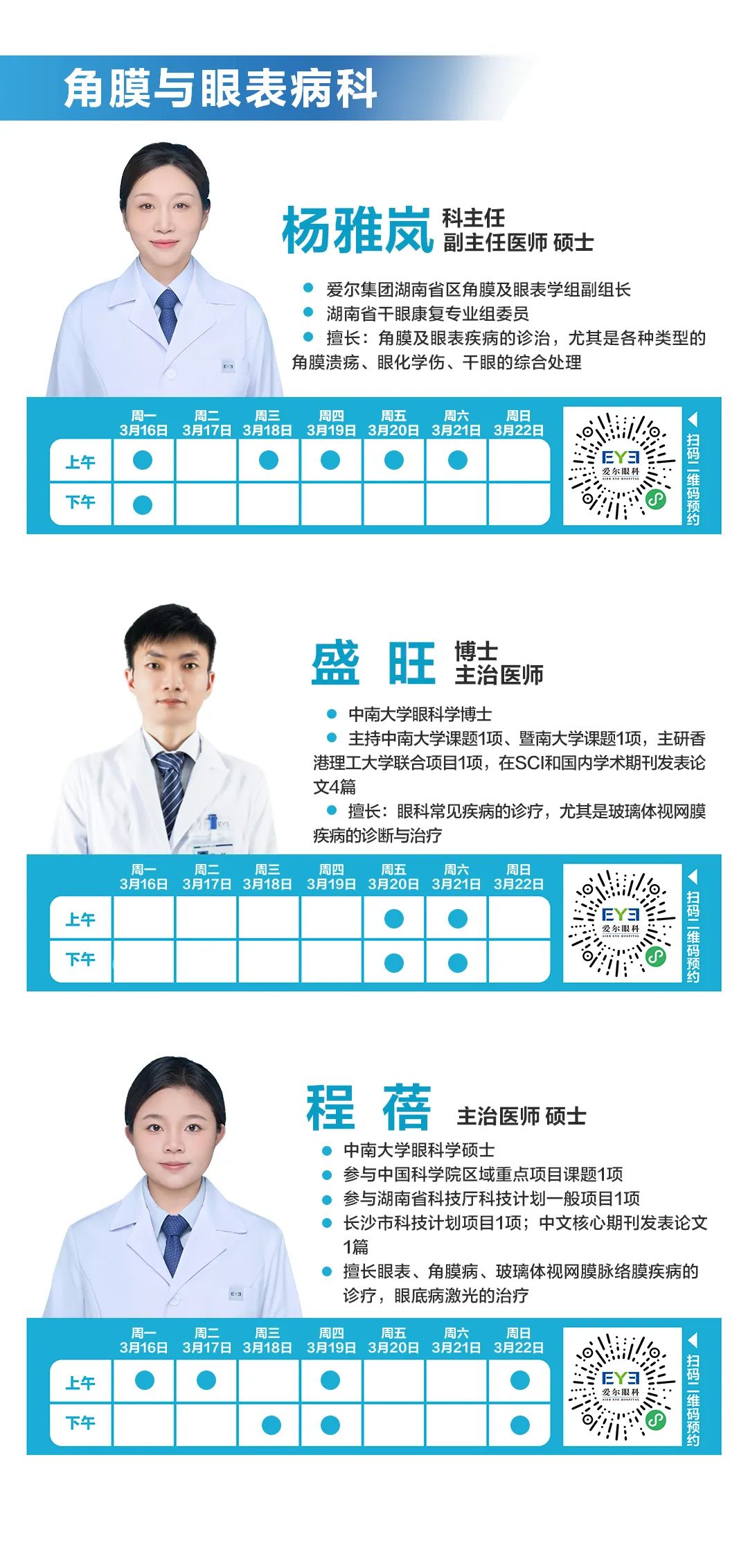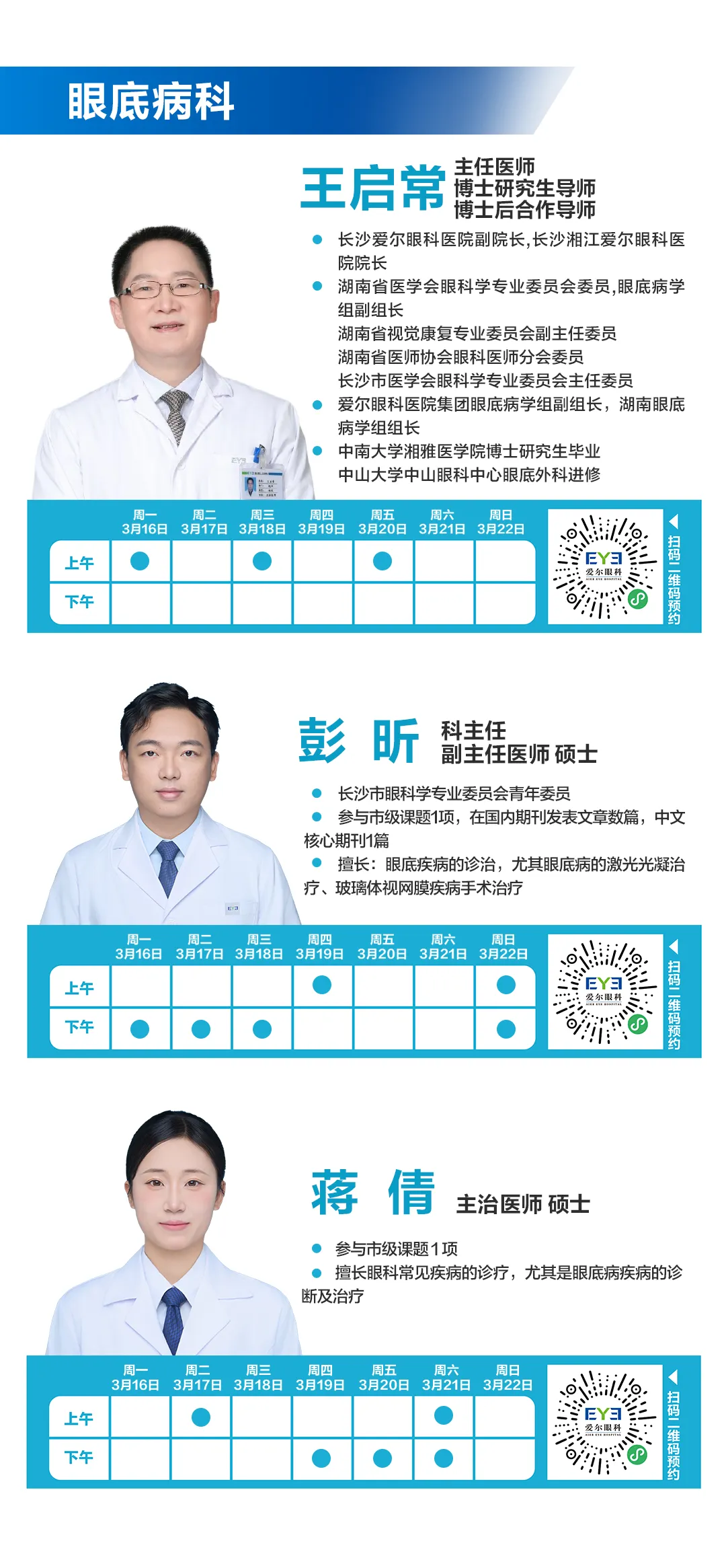 >3.16-3.22长沙湘江爱尔眼科医师排班表