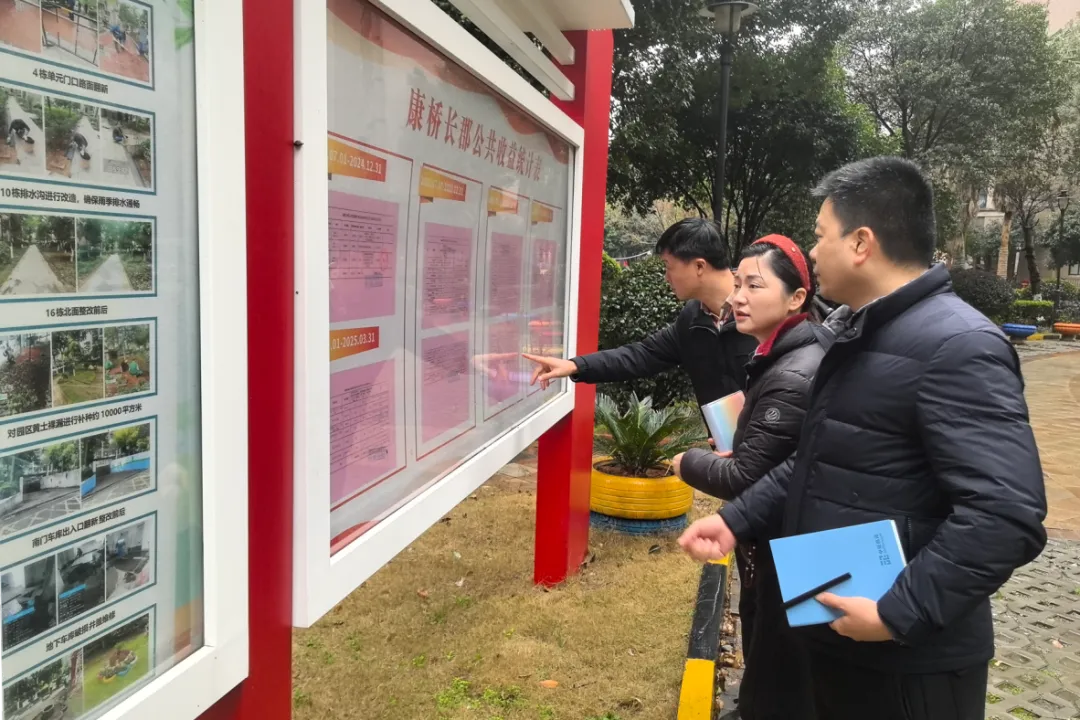 ▲长沙县各级纪检监察组织把治理物业服务突出问题作为重点民生实事,督促职能部门通过厘清收支边界、建立专户管理与定期公示机制等,切实守护群众利益。图为泉塘街道纪工委联合相关部门在辖区内小区查看公共收益情况。