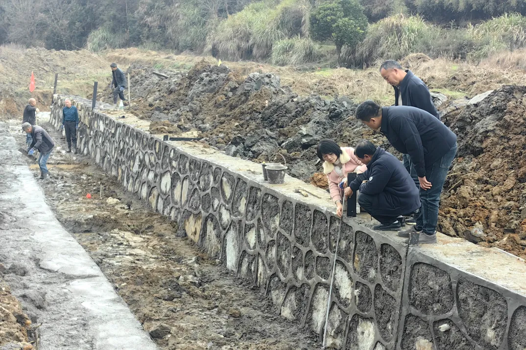 ▲浏阳市各级纪检监察组织聚焦职能部门春耕备耕工作落实情况,深入村组开展检查。图为小河乡纪委在水圳项目现场对工程相关指标进行测量,督促畅通灌溉渠道,保障粮食生产。