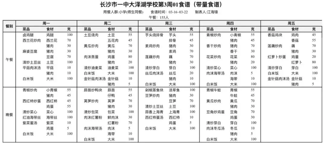 健康成长,“食”刻相伴|长沙市一中大泽湖学校第三周营养食谱