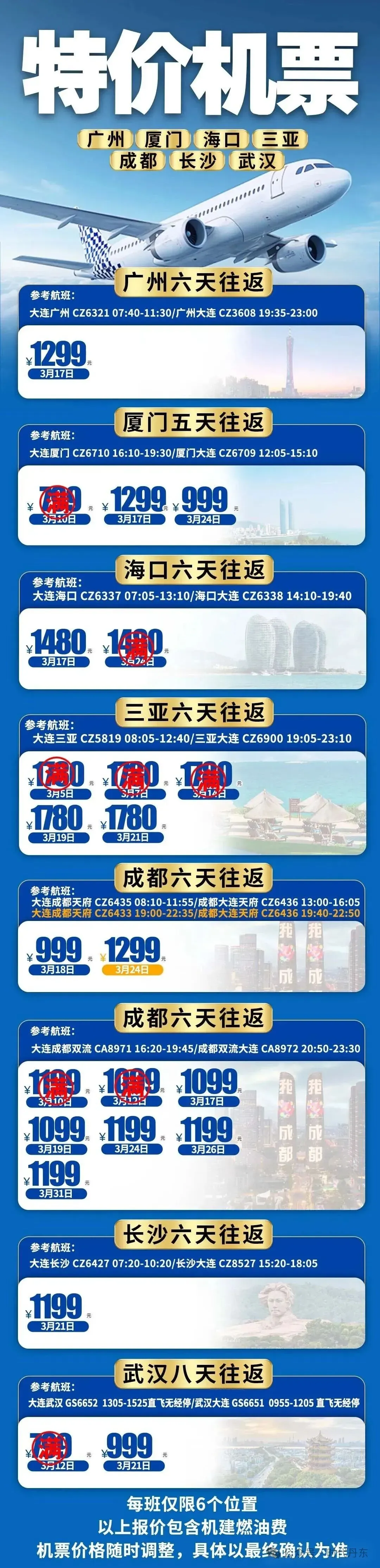 >(特价机票)武汉/长沙/成都/三亚/海口/厦门/广州/昆明/南京/西安/上海/深圳/重庆/南宁/版纳/天府