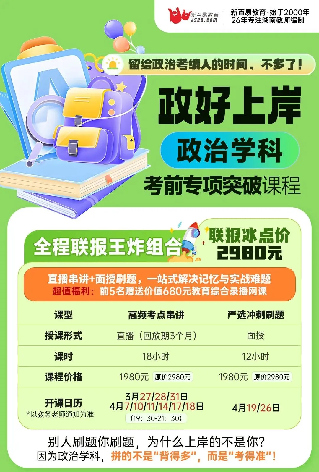 专为全职备考的考生量身打造,由教招资深讲师全程授课,周一至周五全天沉浸式上课,系统梳理语文教招核心知识点、答题技巧与备考思路,搭配专属备考群答疑、错题复盘指导,让备考更高效、更省心,实现效率翻倍,全力冲刺上岸。