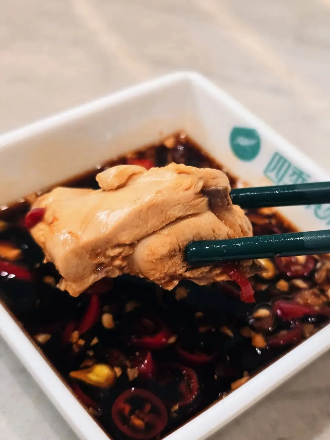 它家鸡肉品质一直在线,煮好之后嫩而不柴,入口清爽没有负担,配上金桔柠檬、沙姜、小米辣加生抽的经典蘸料,味道特别正。