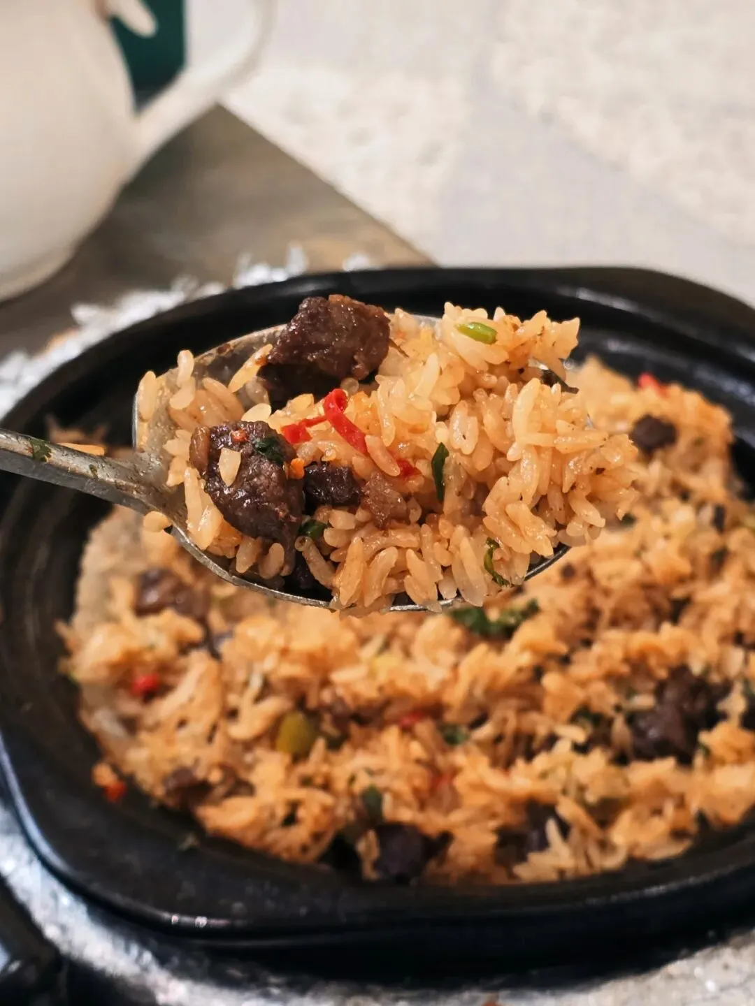 它家煲仔饭我真的要重点夸。经典腊味很香,但我更爱牛肉煲仔饭,带一点辣度,锅巴焦香酥脆,一大片能整块挖起来。有点小辣的煲仔饭配清甜椰子鸡,真的很好品。相比之下,单人罐罐腊味饭就逊色很多,不是一个水准。