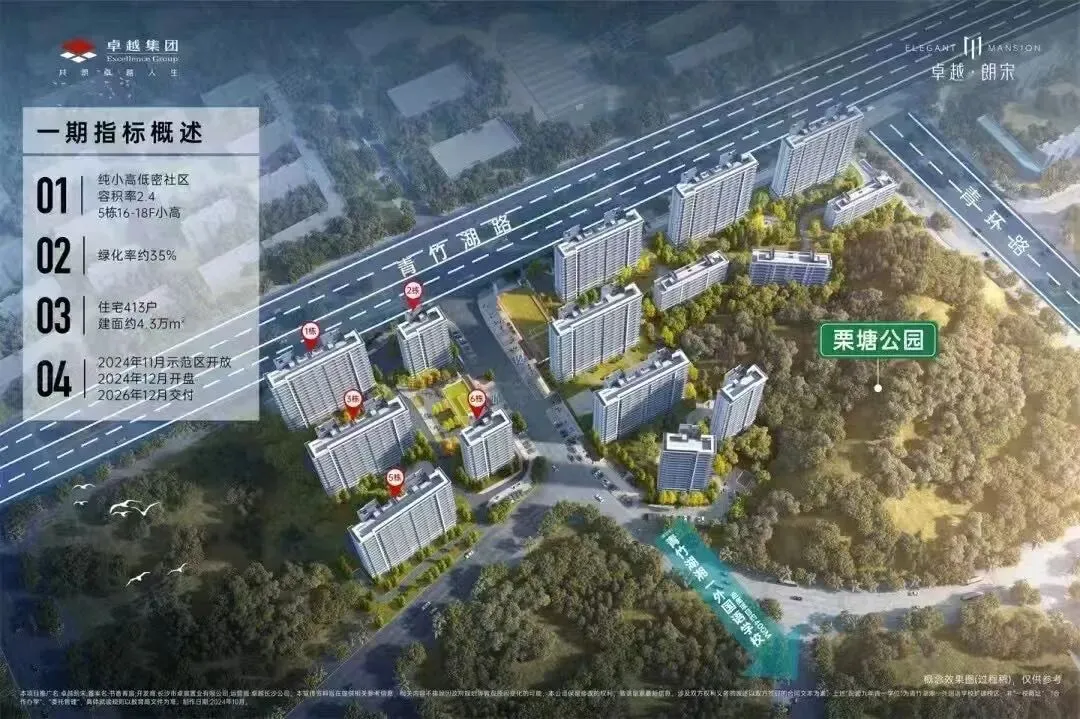 价格:预计1.8万/㎡;交房:2027年4.卓越朗宋(青竹湖)
