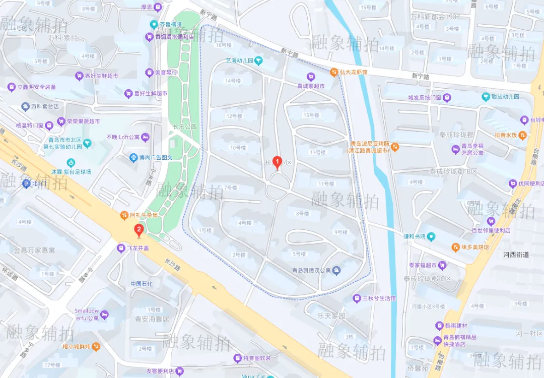 该房产位于长沙路与宁乡路交汇处,紧邻长沙路、重庆南路、黑龙江南路三条城市主干道及跨海大桥高架路,交通网格十分发达,附近有地铁M3号线长沙路站,周边多条公交线路通行,出行极为便利。方圆一公里左右有市北区第七实验幼儿园紫台园区、艺海幼儿园、聪丛幼儿园、保利和乐天汇幼儿园、市北区博雅幼儿园、天怡景园幼儿园、青岛博文小学、青岛河西小学、青岛立新小学、青岛明德小学、青岛弘毅中学、青岛格兰德中学、青岛第五十五中学、同和医院、继敏社区卫生服务站、河西街道社区卫生服务中心、合肥路街道卫生服务中心、小水清沟社区卫生服务中心、家佳源购物中心市北店、凯德广场、和达中心城、居然之家、绿佳农贸市场、洛阳路综合农贸市场等,基础配套成熟完善,满足居家生活及休闲娱乐各项所需。