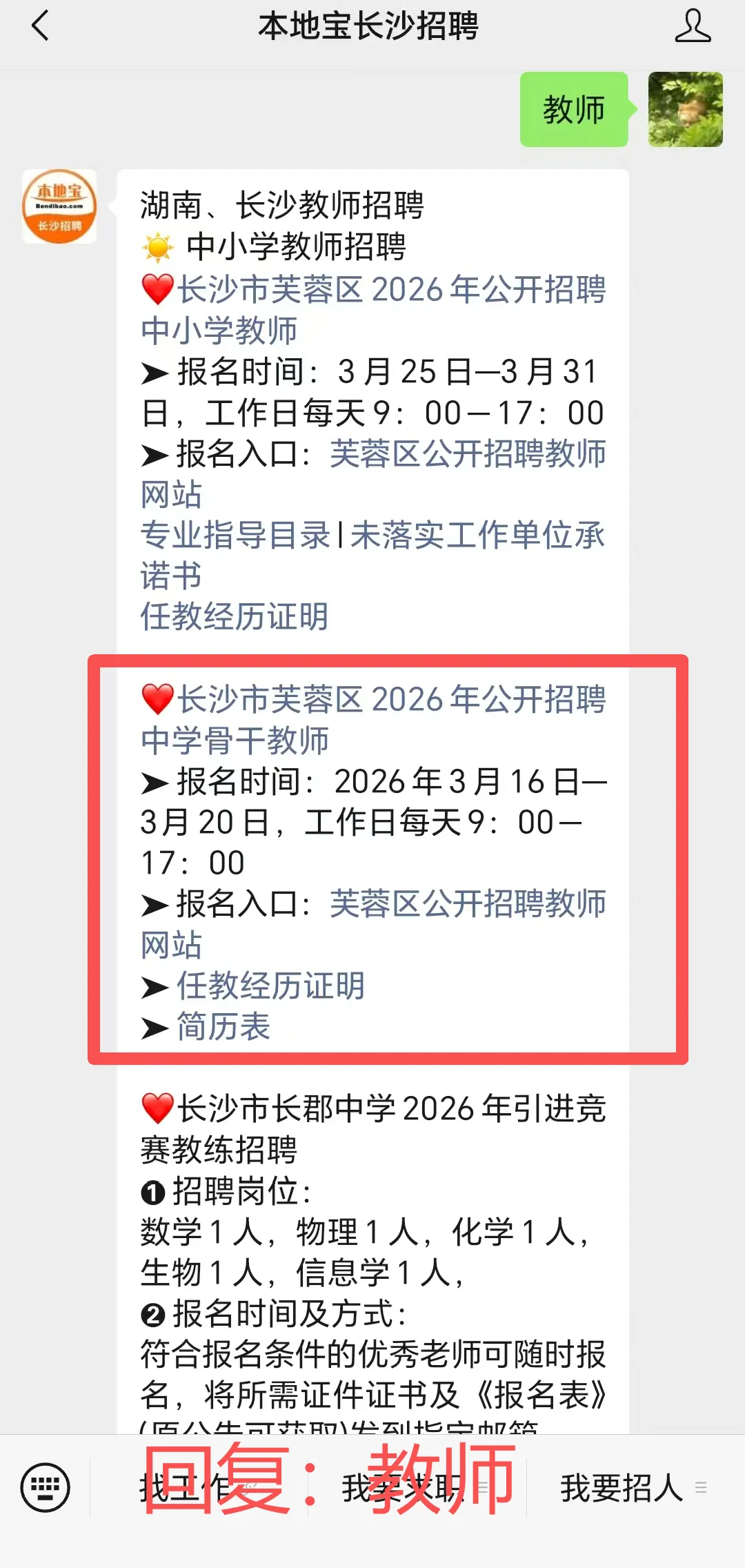 长沙市芙蓉区2026年公开招聘中学骨干教师