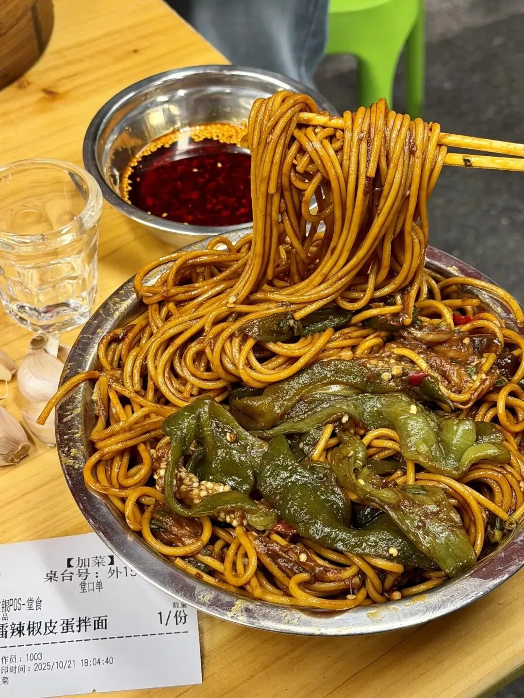 ▪️擂辣椒皮蛋拌面 🍜好吃,很香,黏黏糊糊的挂汁! 面用的是热干面那种挂面,很推荐给皮蛋爱好者~
