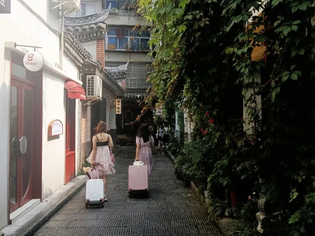 看见两个女生拖着箱子冲进巷子,突然感觉长沙的老巷子竟然有如此吸引力,顺手拍下这张照片(下图)。