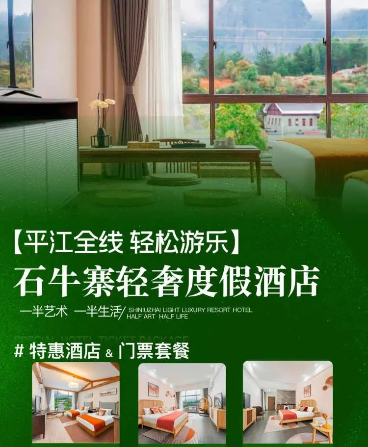 升级家庭套房需加收200元/间,升级后含2人早餐,其他套餐的景区门票不变,需另外补票购买