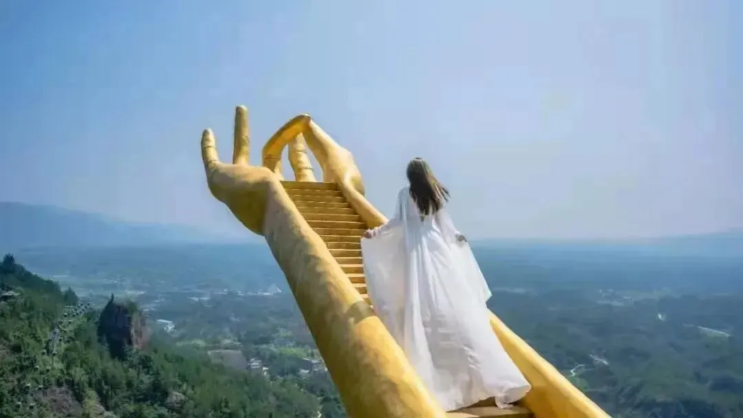 玻璃桥长180米,架于两座绝壁之间,高声呐喊、勇敢前行。还有步步惊心,悬崖佛手,绝壁栈道等网红项目