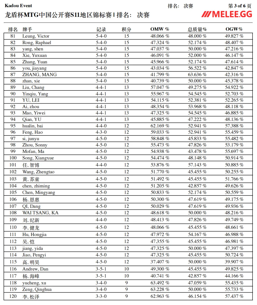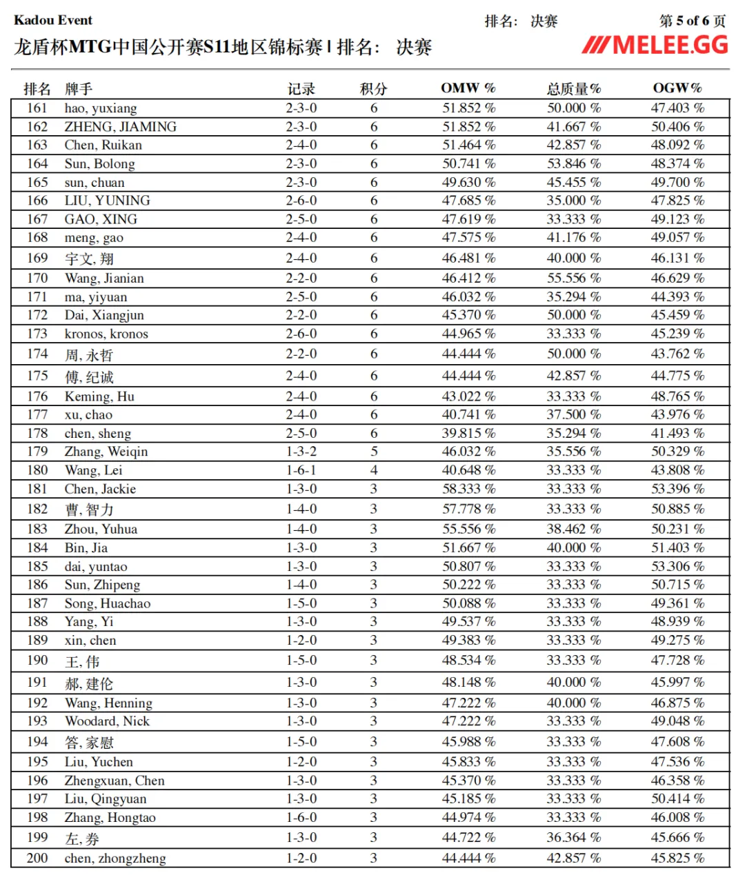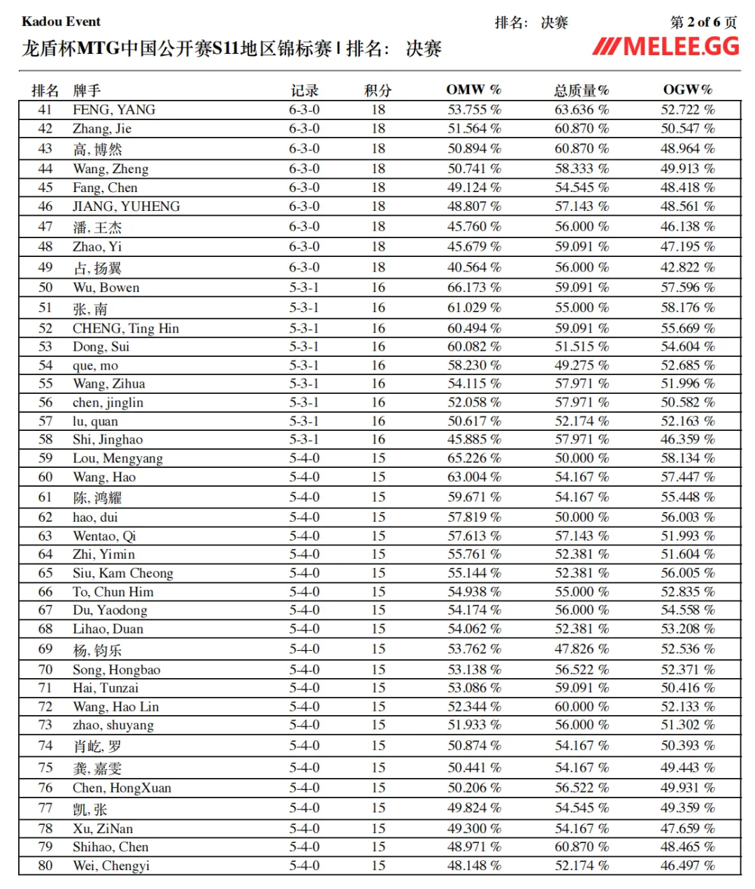 第二名:彭桢影,来自西双版纳傣族自治州,通过MTGO 纯铁资格赛获得资格,操控铁木尔谐颂者组合技,获得7胜2平0负积23分。