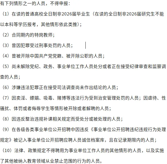 (4)法律、法规和政策规定不能录用为事业单位工作人员的其他情形。
