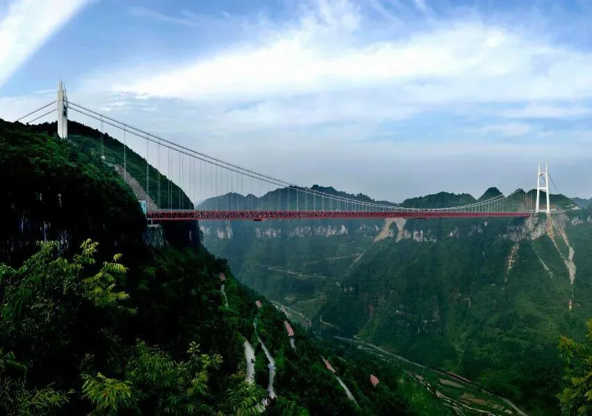 后乘车前往【矮寨奇观景区AAAAA】(景区环保车已含),抵达后参观当年楚国诗人屈原含悲问天谱写中国伟大诗章《九歌》《天问》的地方—【天问台】,人立台上,顿感天地之伟大,人类之渺小。后换乘景区环保车前往游览--世界十大非去不可的新地标—【矮寨悬索大桥景区】,前往游览体验悬崖【魔鬼悬崖玻璃栈道】,它是由悬崖栈道与观景平台组成的高空游览线,全长1.5公里,位于德夯大峡谷峭壁之上,采用现代设计语言,萃取“蝴蝶”、“飘带”等苗族文化元素,形成戏剧性“跌宕起伏”、“惊心动魄”的旗帜性游览步道系统。游览悬崖栈道时不仅可以欣赏到山高谷深、崖陡壁俏、林深路幽、巍峨险峻的武陵山脉中最精彩、最险峻、最梦幻的地段,还可以体验由玻璃魔道带来的视觉刺激、冲击游人接受极限的潜能。