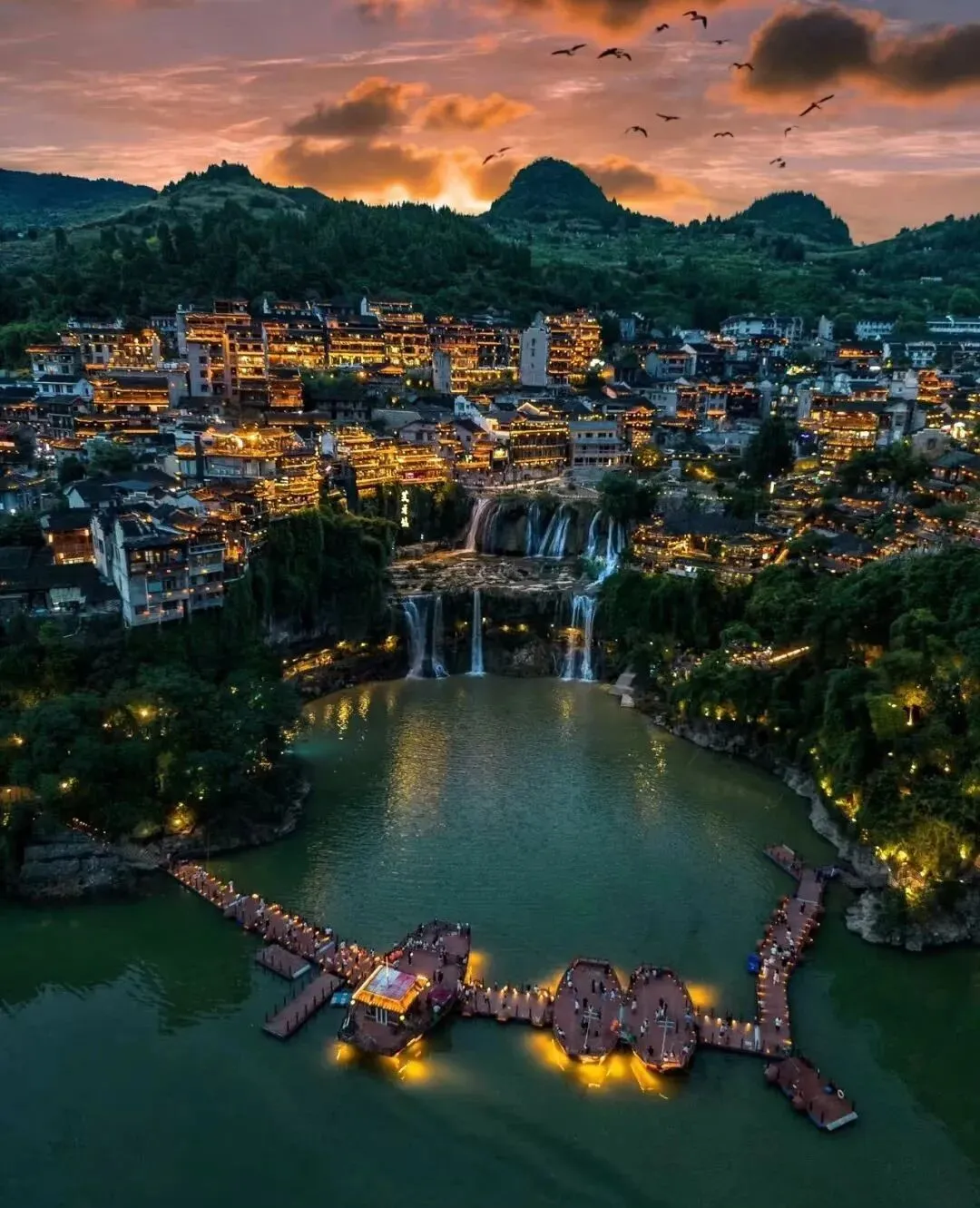 汽车赴网红打卡地【芙蓉古镇】(夜宿),山水如画,多情的酉水养育了世世代代的土家儿女,也造就了沿岸动人的风光,酉水画廊纳含着芙蓉镇的草木、山水、人儿,一道道美丽的彩虹是它编织的最美西兰卡普。这里得酉水舟楫之便,上通川渝,下达洞庭,素有“楚蜀通津”之称。因谢晋执导,刘晓庆、姜文主演的电影《芙蓉镇》在此取景而出名,于是人们便把此地叫做芙蓉镇。时代变迁,历久弥新,更因其独特的原始人文,静谧山水成为新时代湖南旅游新宠。芙蓉古镇大瀑布,酉水码头繁华依旧!