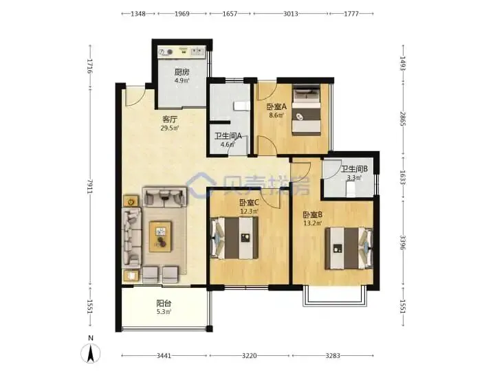 104㎡精装三房,仅售198万,折合单价1.9万出头,无抵押无贷款,免个税。