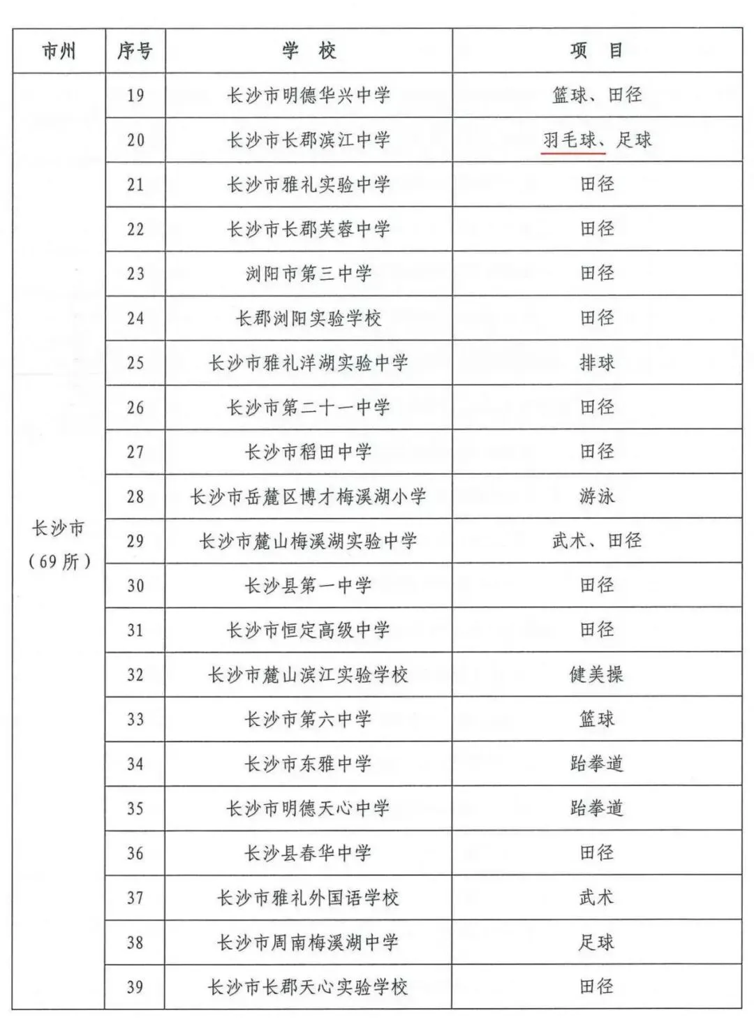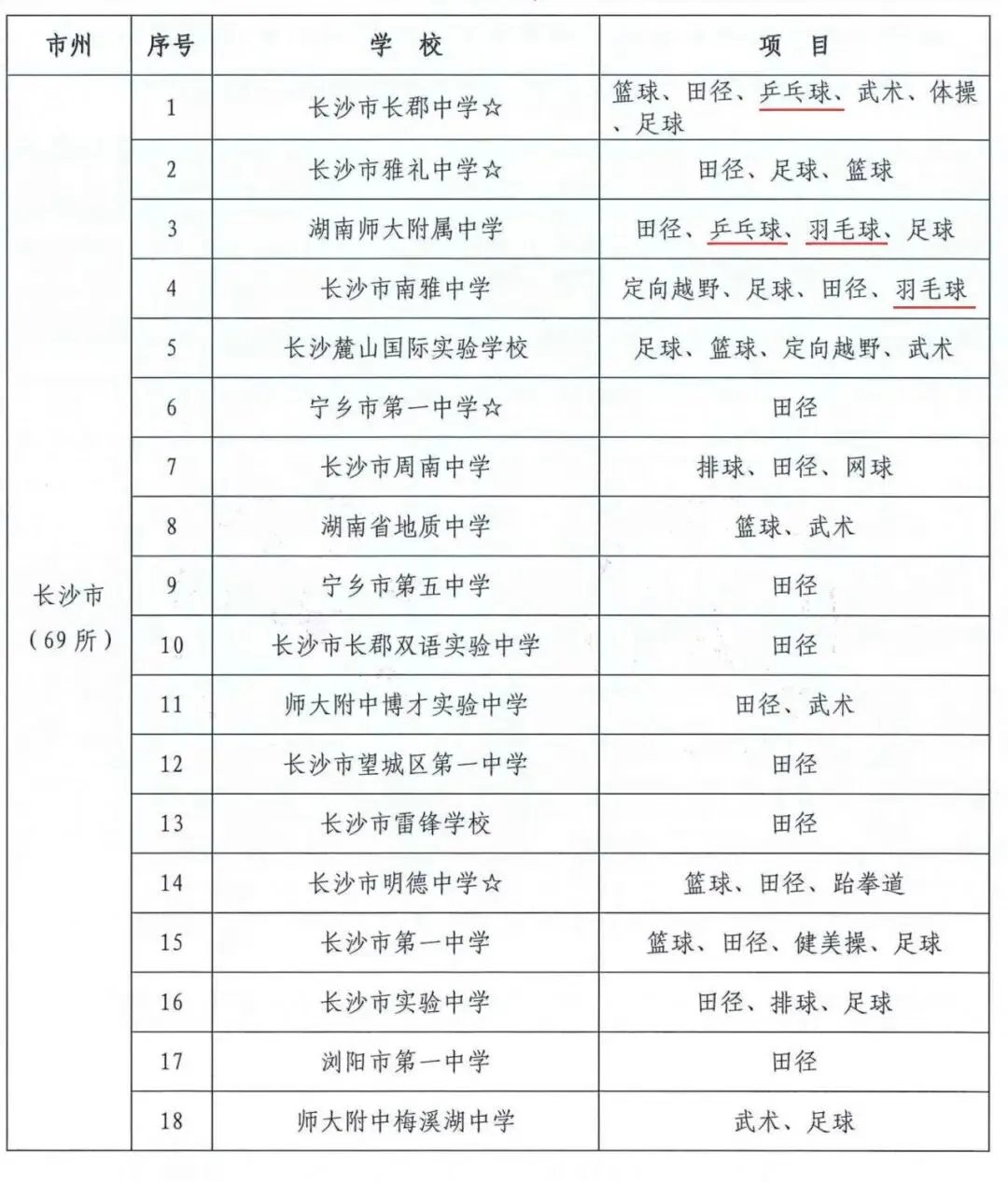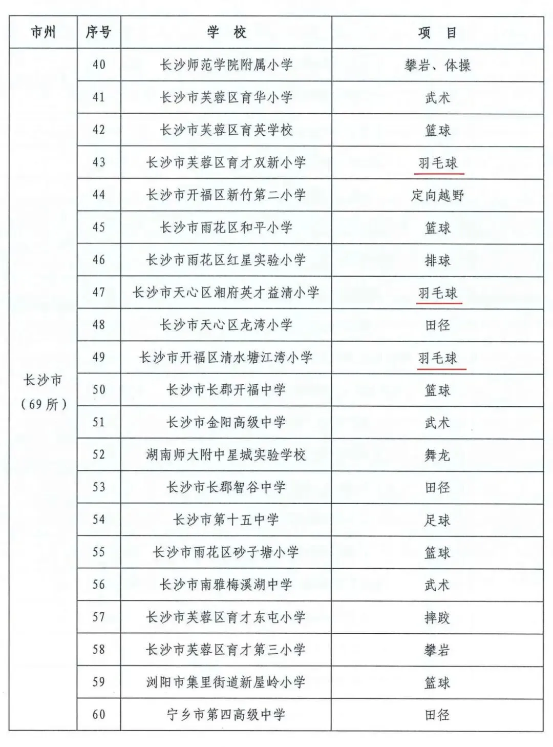 湖南省体育传统特色学校名单