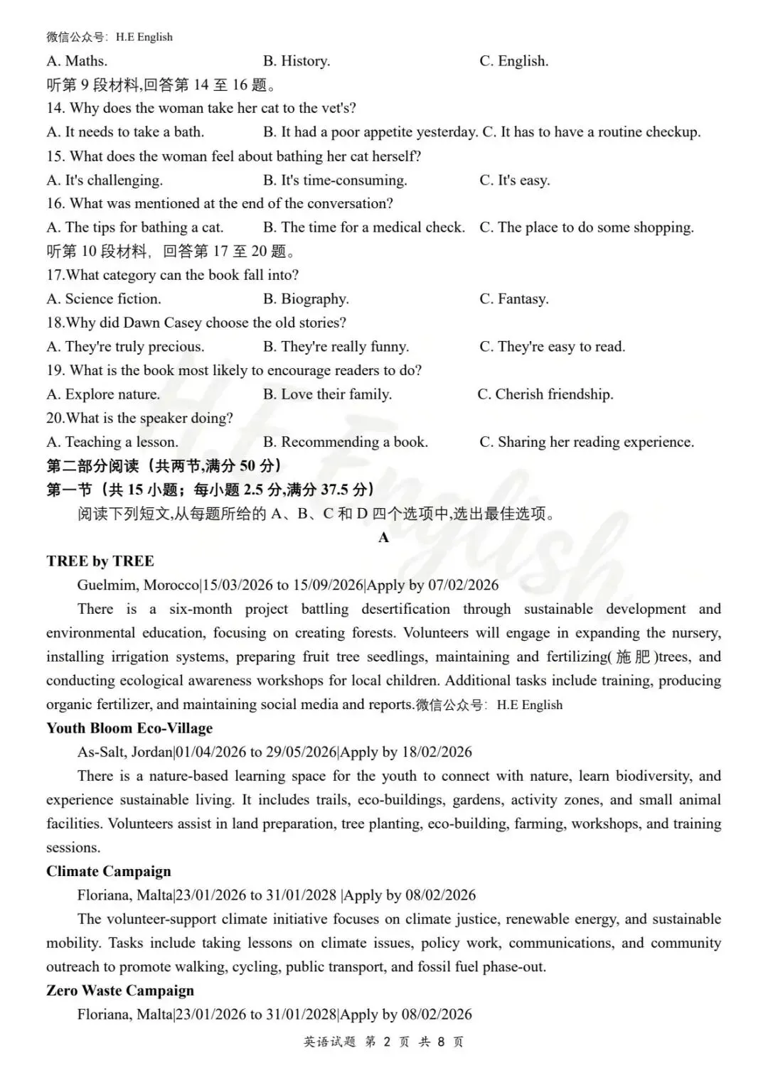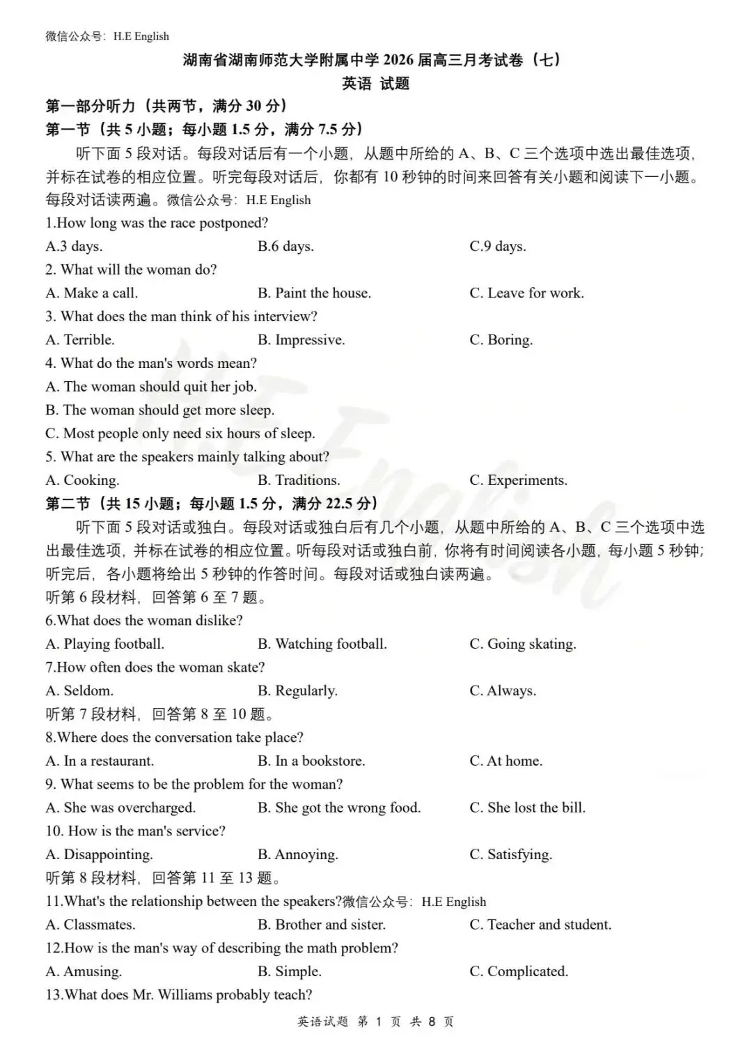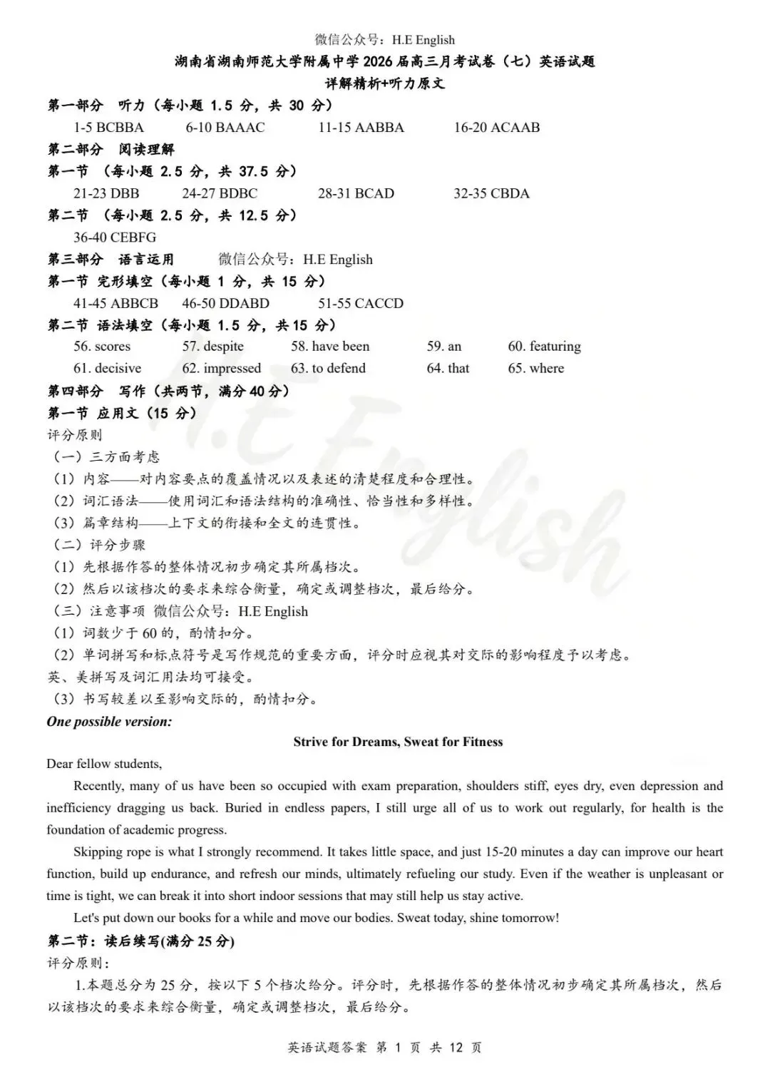 当前位置:首页>长沙>2026届 湖南长沙师大附中2026年2月月考试卷(七)英语试题+听力音频+答案详解