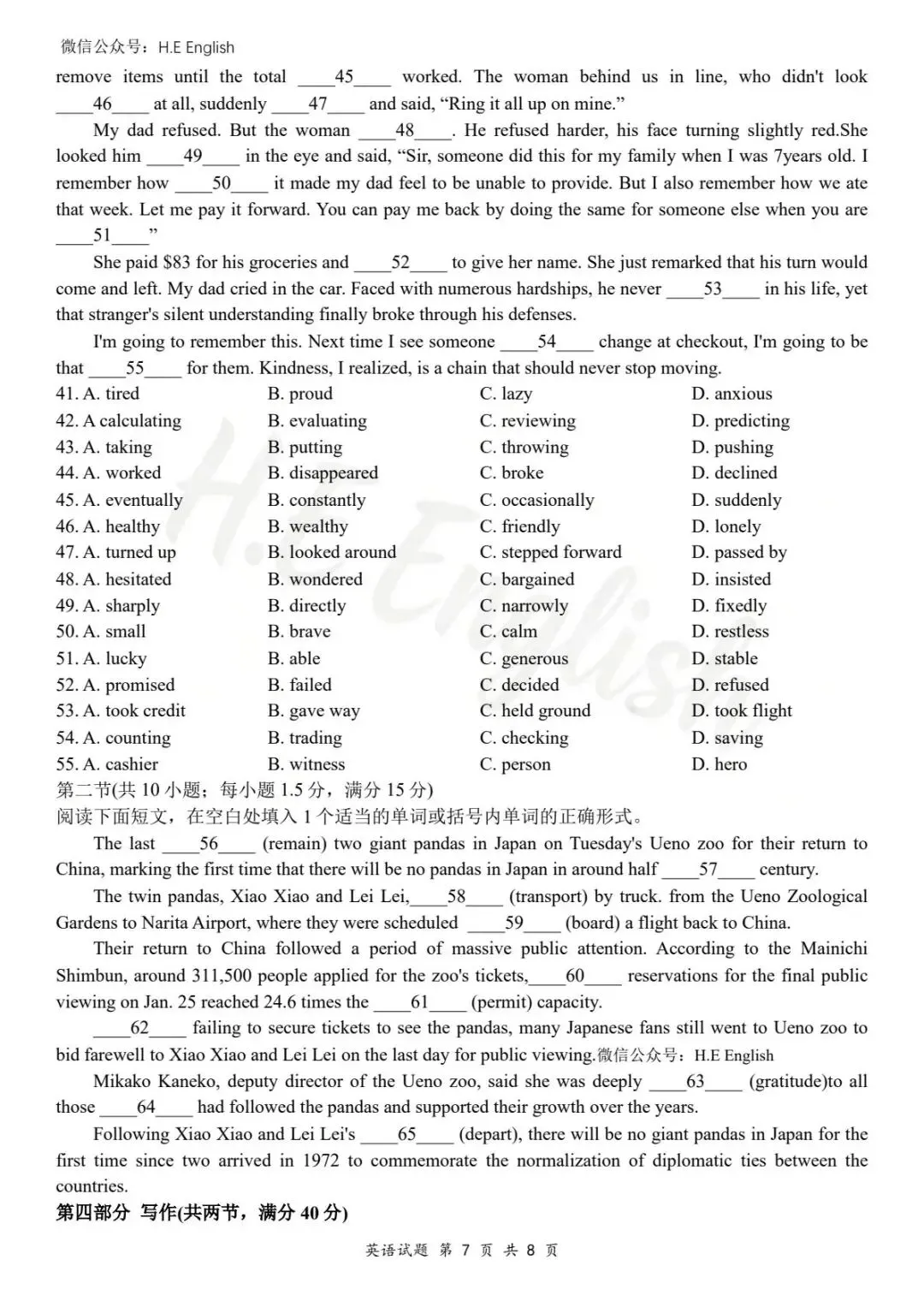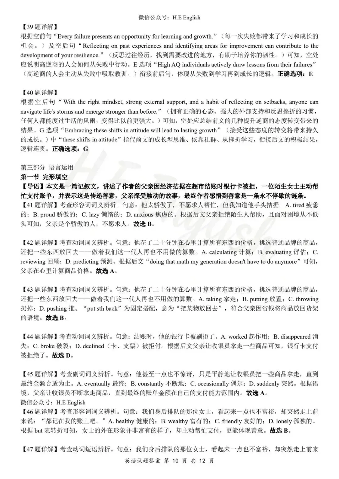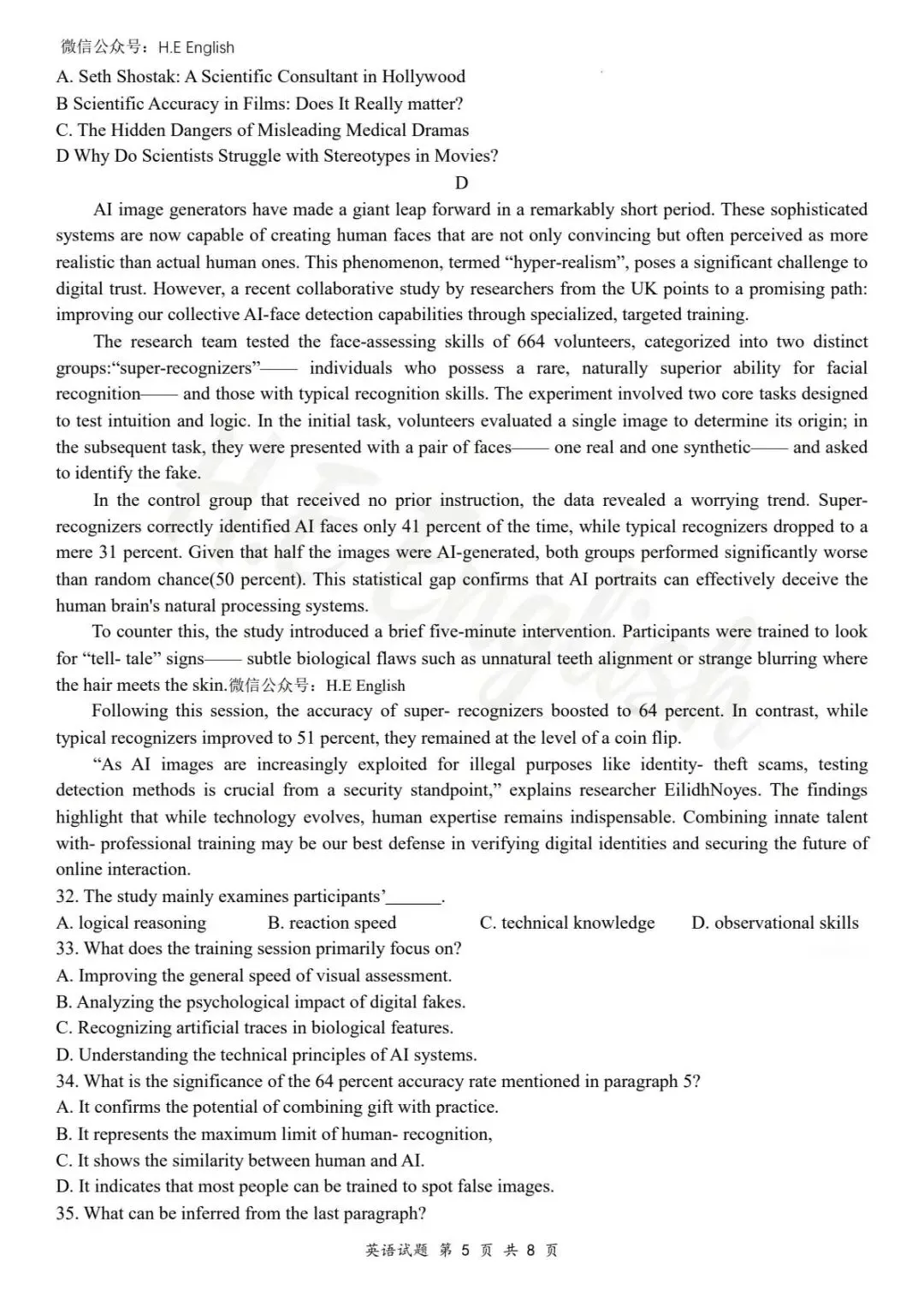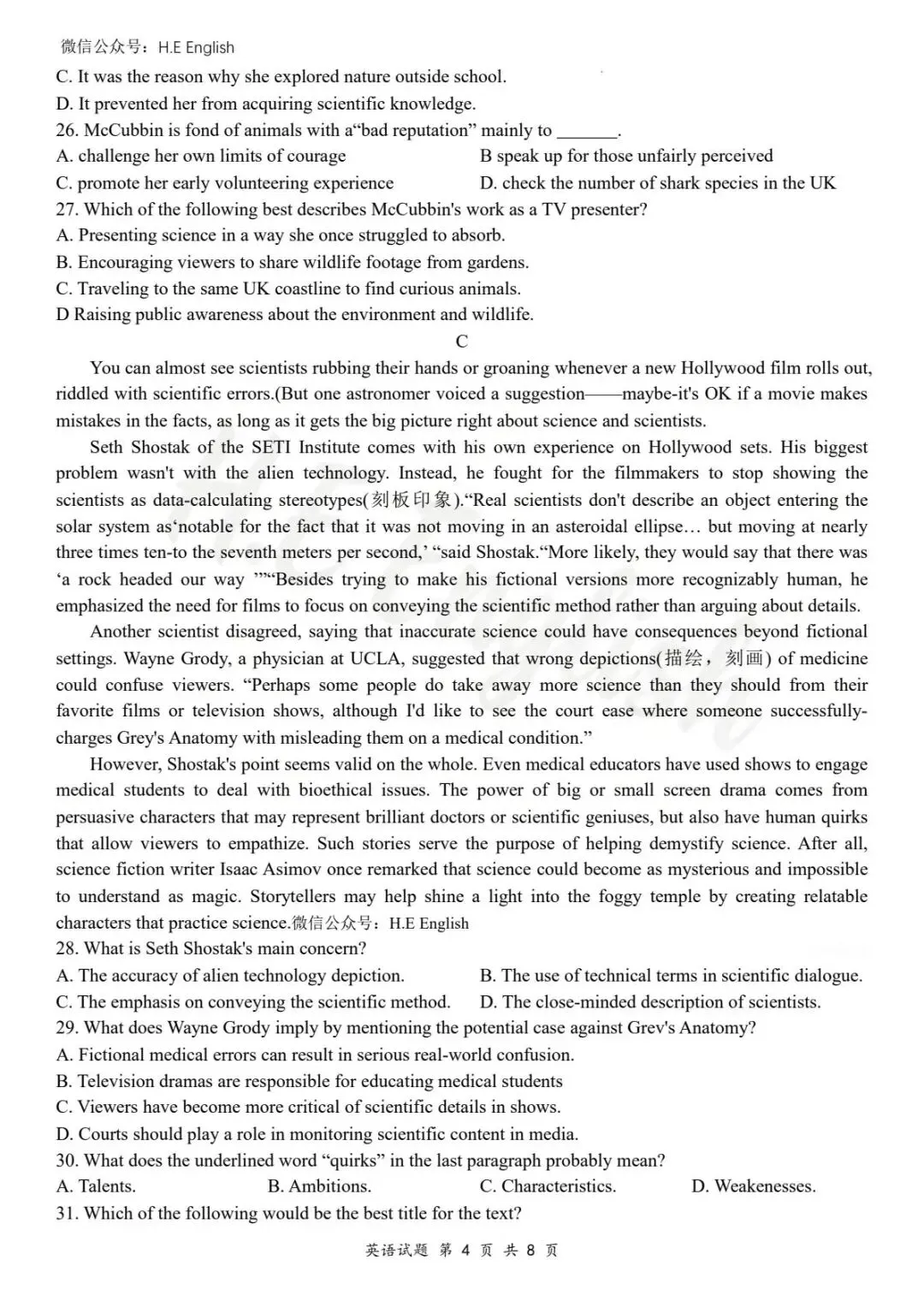 本试卷仅提供重新排版的8页版本(字体小四),并搭配详细的解析(阅读错误选项也有分析)。介意试卷非原版的请忽视。