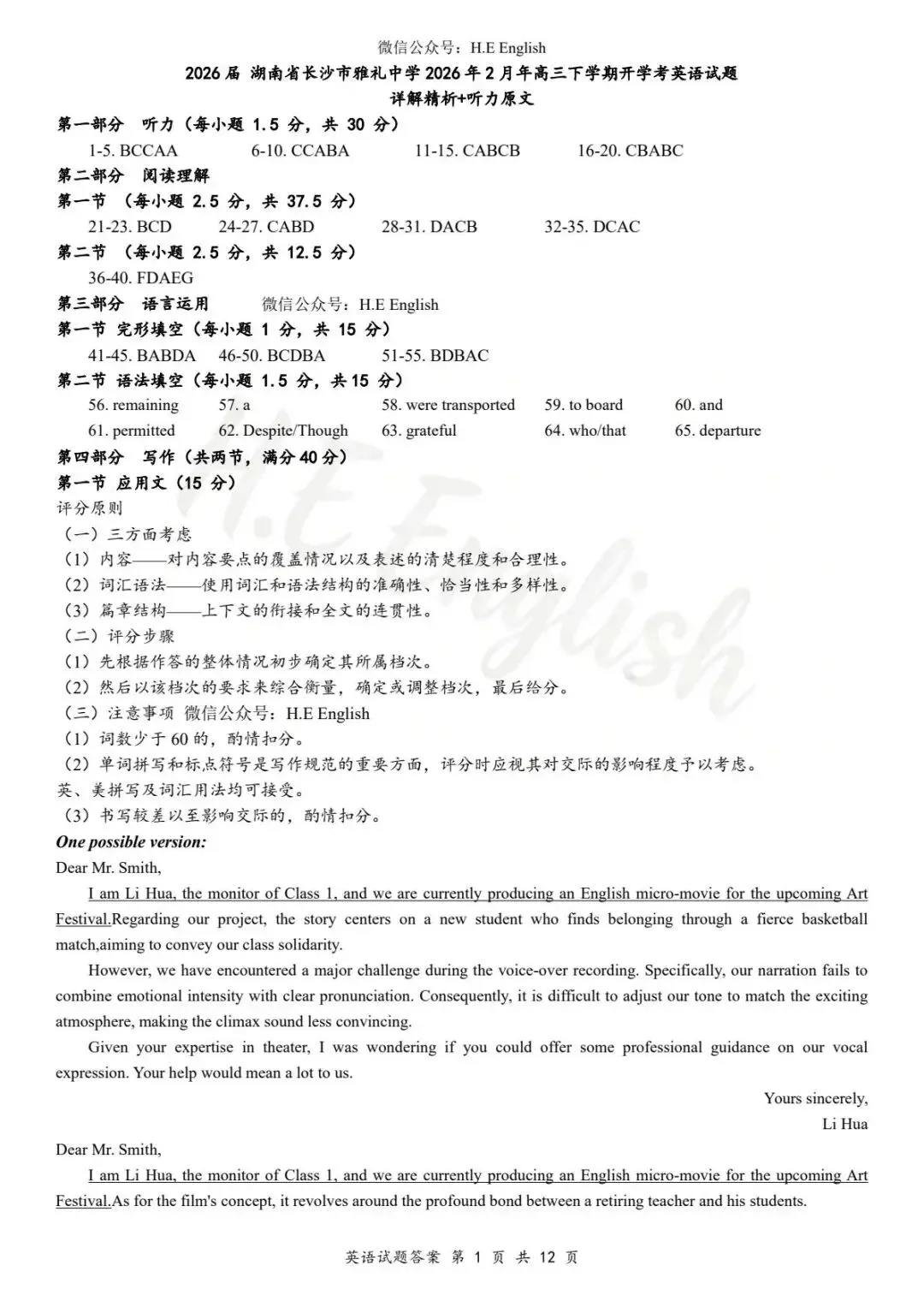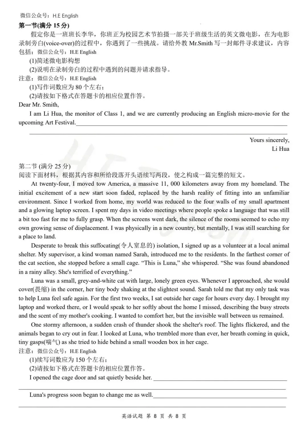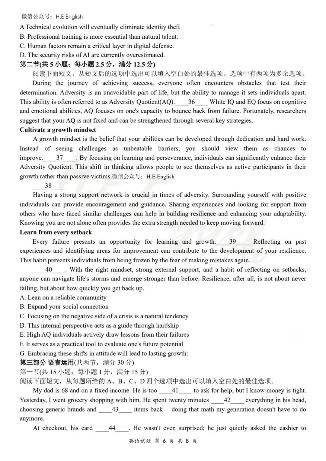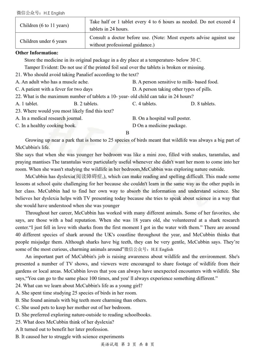 本试卷仅提供重新排版的8页版本(字体小四),并搭配详细的解析(阅读错误选项也有分析)。介意试卷非原版的请忽视。