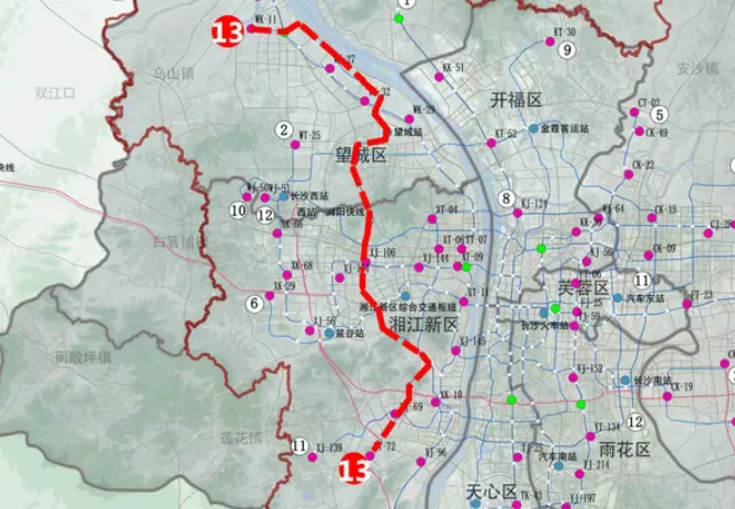 地铁13号线,不仅是一条线,更是一条河西发展的“黄金脊梁”。根据最新规划,路线全长约36公里。它从望城区政府出发,一路向南。经过这些板块: