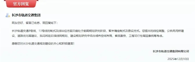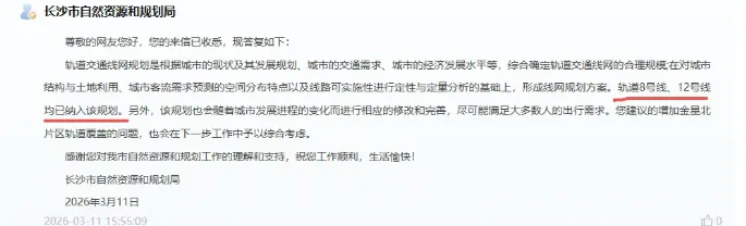 但与人口爆发式增长相比,这里的轨道交通却堪称一个“偏科生”。近日,官方的一则答复,再次将地铁8号线、12号线推向了风口浪尖。这不只是一条线路的规划,这其实是金星北全长沙周边地区的一次“大解渴”。